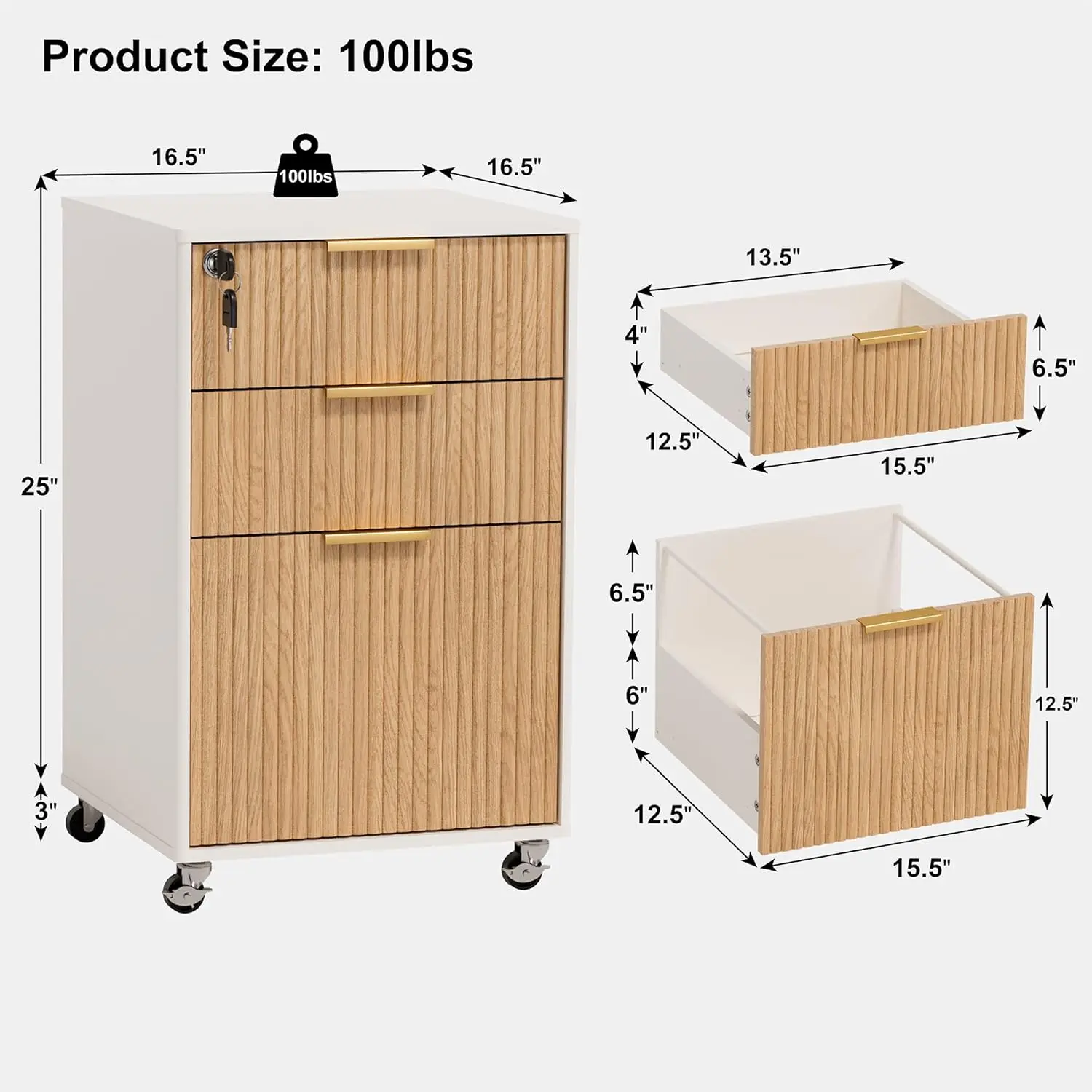 High-quality wood: This filing cabinet is made from eco-friendly wood panels, ensuring long-lasting durability and can support up to 100 pounds. Its surface material is scratch and stain resistant — a simple wipe with a damp cloth will make it look like new.