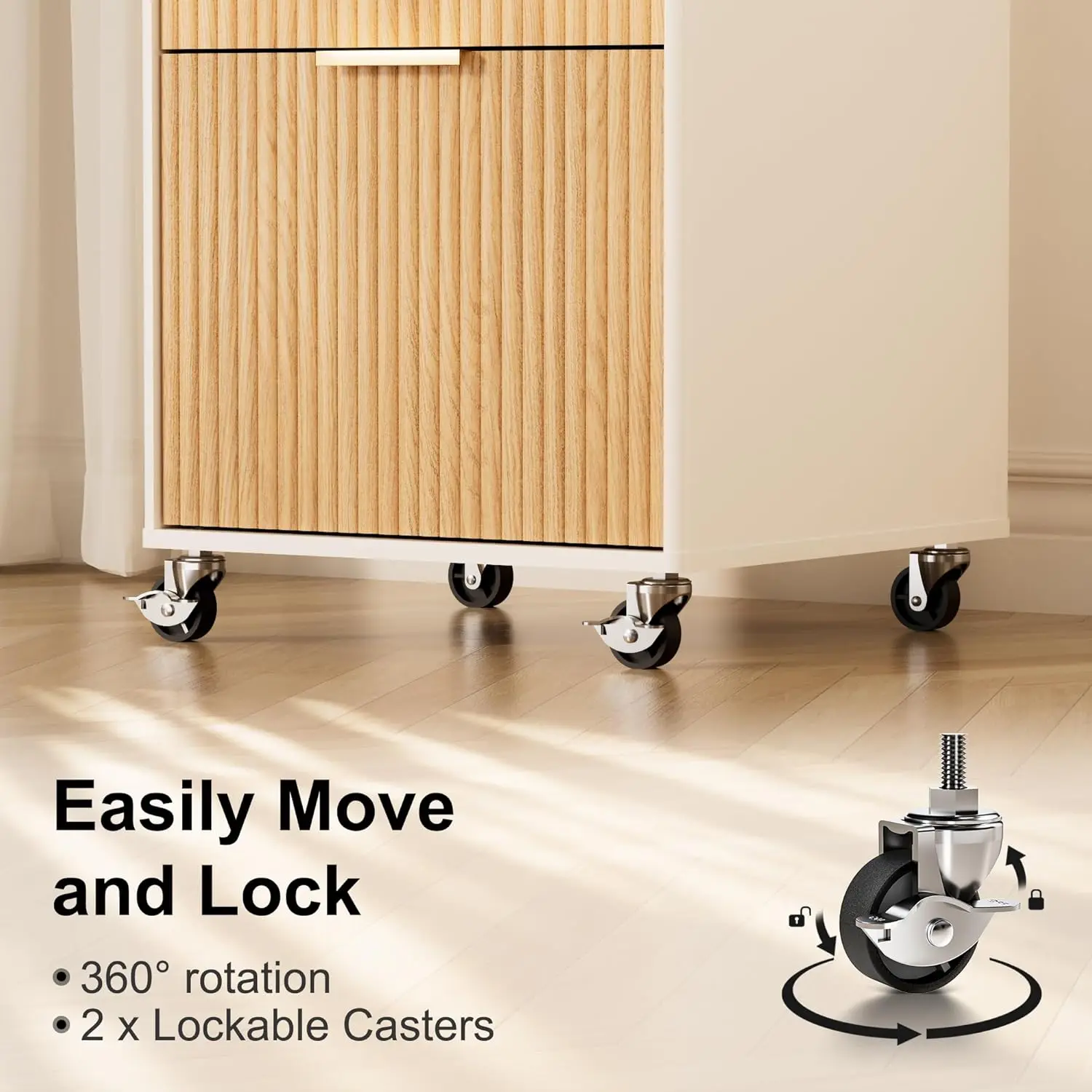 Thoughtful design: Equipped with wheels to ensure household safety and prevent floor damage. Because its multifunctional structure, the file cabinet can easily adjust the workspace or move the device whenever needed.And the wheels have locking mechanism, so the file cabinet can stay stable when movement is not needed.