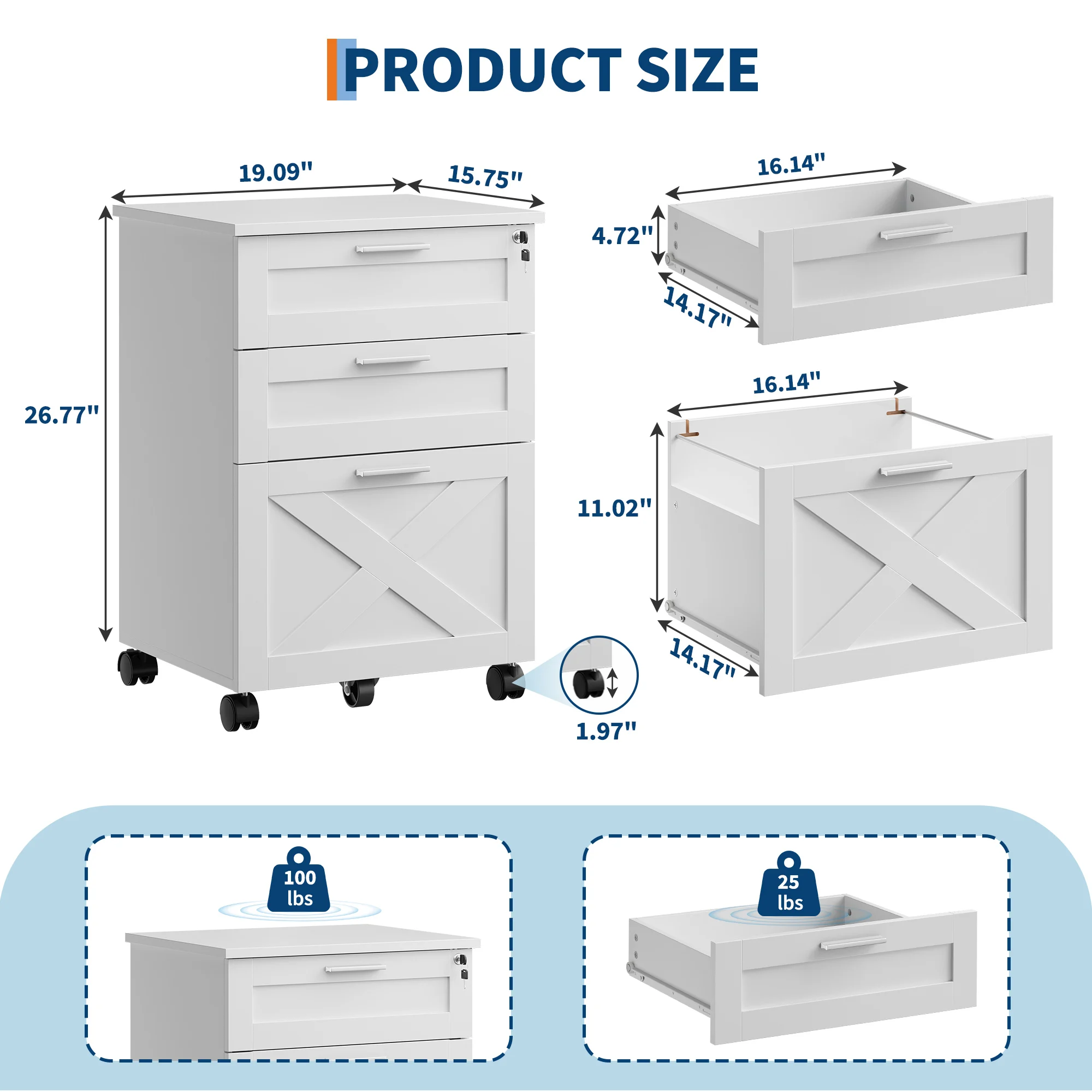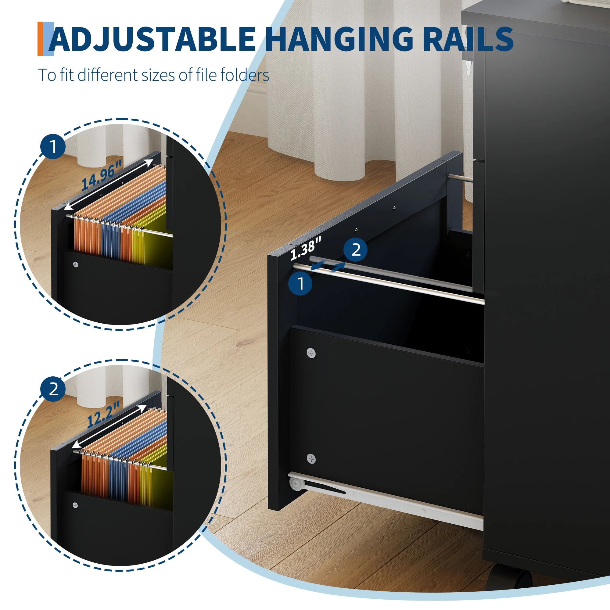 Spacious 3-drawer file cabinet fits A4, Letter, and Legal documents, keeping your office organized and clutter-free.
