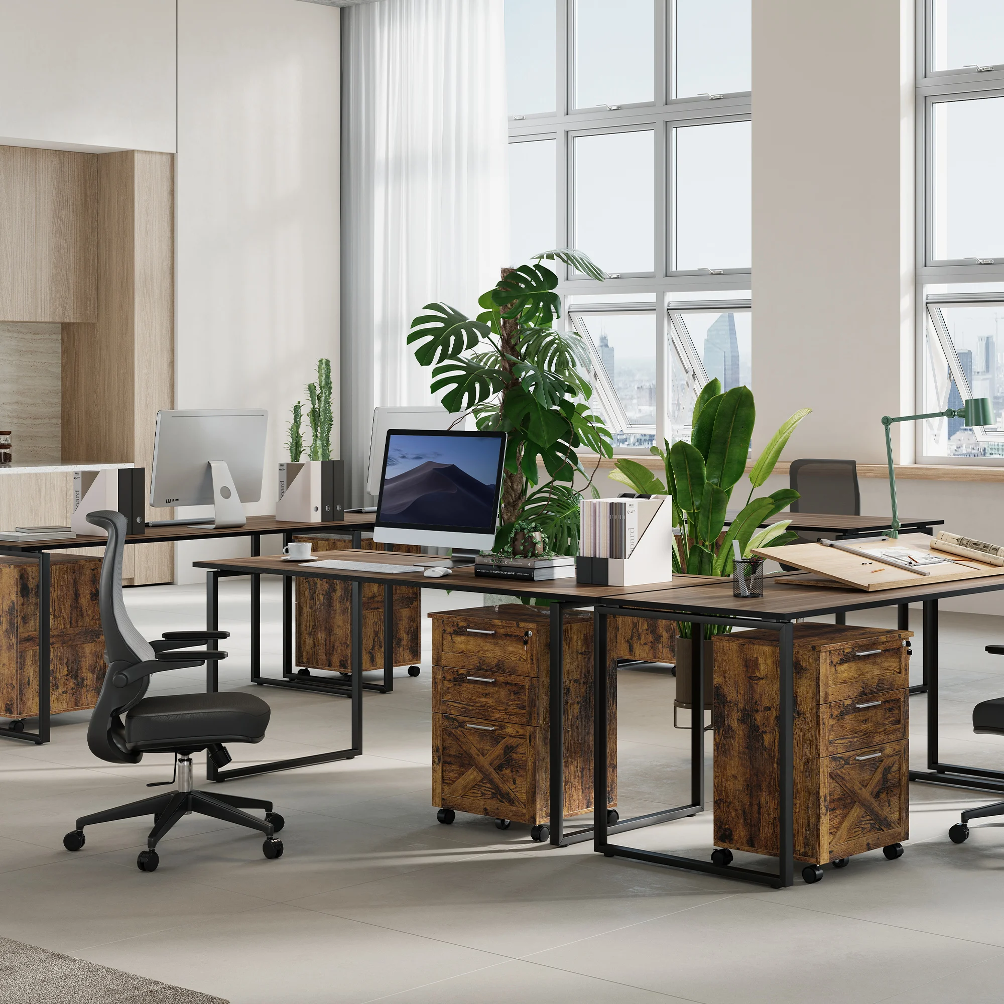 Five smooth casters, including two locking front wheels and a center anti-tip wheel, provide easy mobility and stability under any desk.