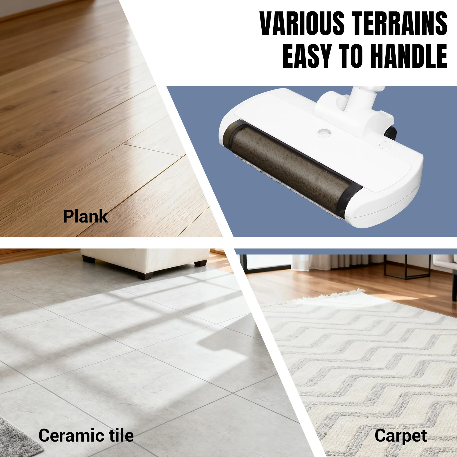 ✅ Multi-Terrain Adaptability: Effortlessly handles various floor types, including wooden planks, ceramic tiles, and carpets. No need to switch tools—one machine for all your flooring needs.