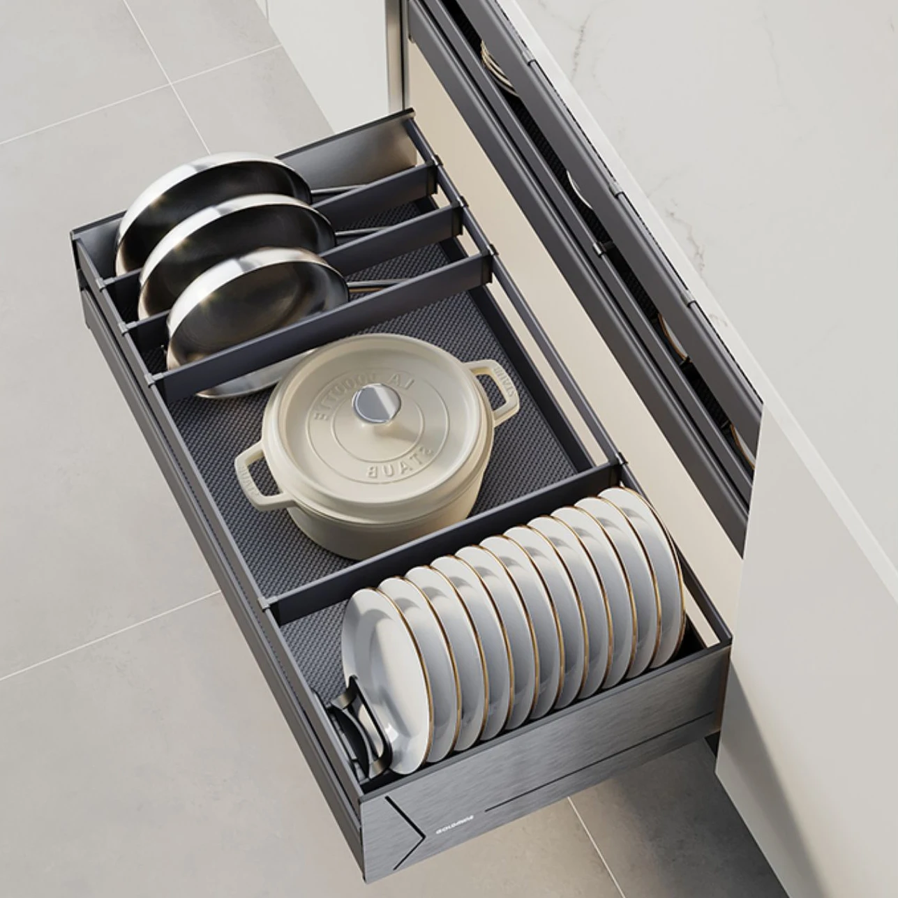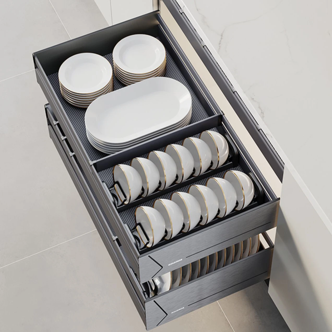 3 Layers Kitchen Cabinet Interior Organizers Pull Out Dish Shelf Multi-function Cutlery Storage Drawer Basket