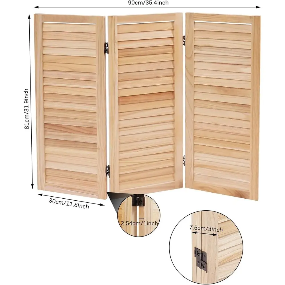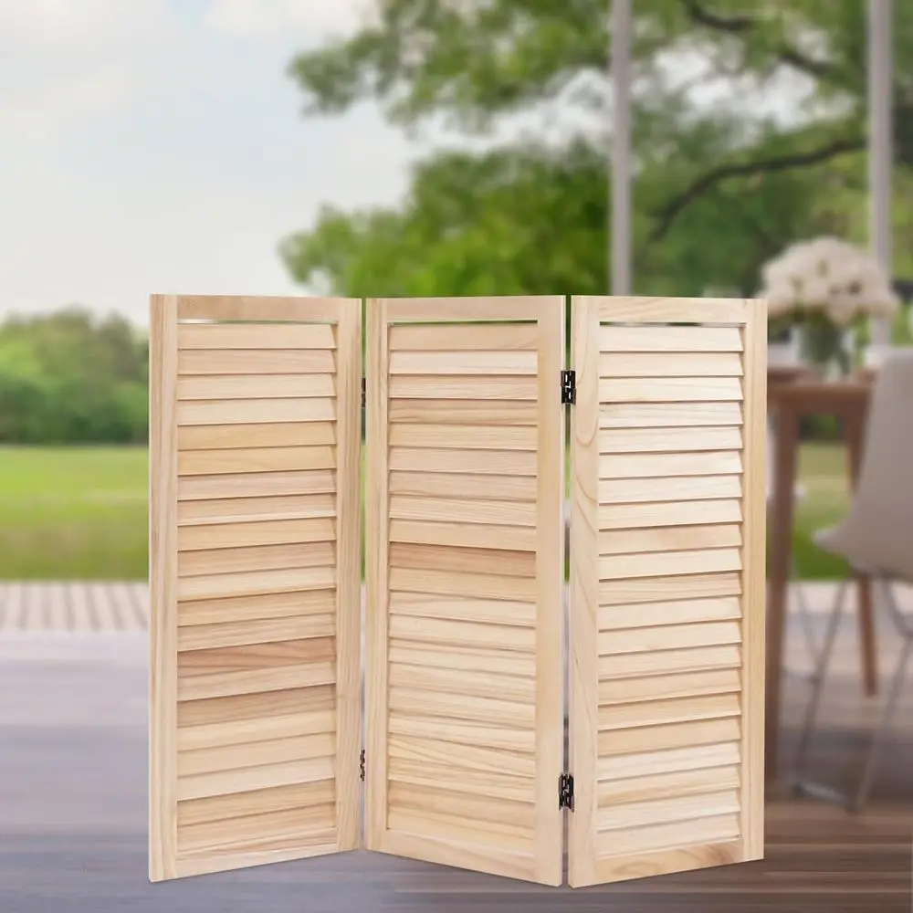 This 3-panel room divider is crafted from durable Paulownia wood, which is naturally resistant to corrosion, ensuring that it remains rot-resistant. It’s perfect for creating a dedicated space within a larger room, such as hiding clutter or defining areas. The foldable design offers high flexibility, allowing you to fold or unfold the panels to fit various space sizes and needs. When folded, its thickness is only 3 inches, making it easy to store in a narrow space without taking up much room. The natural wood color combined with the shutter design gives it a modern and stylish look, making it an elegant and tasteful addition to different spaces.