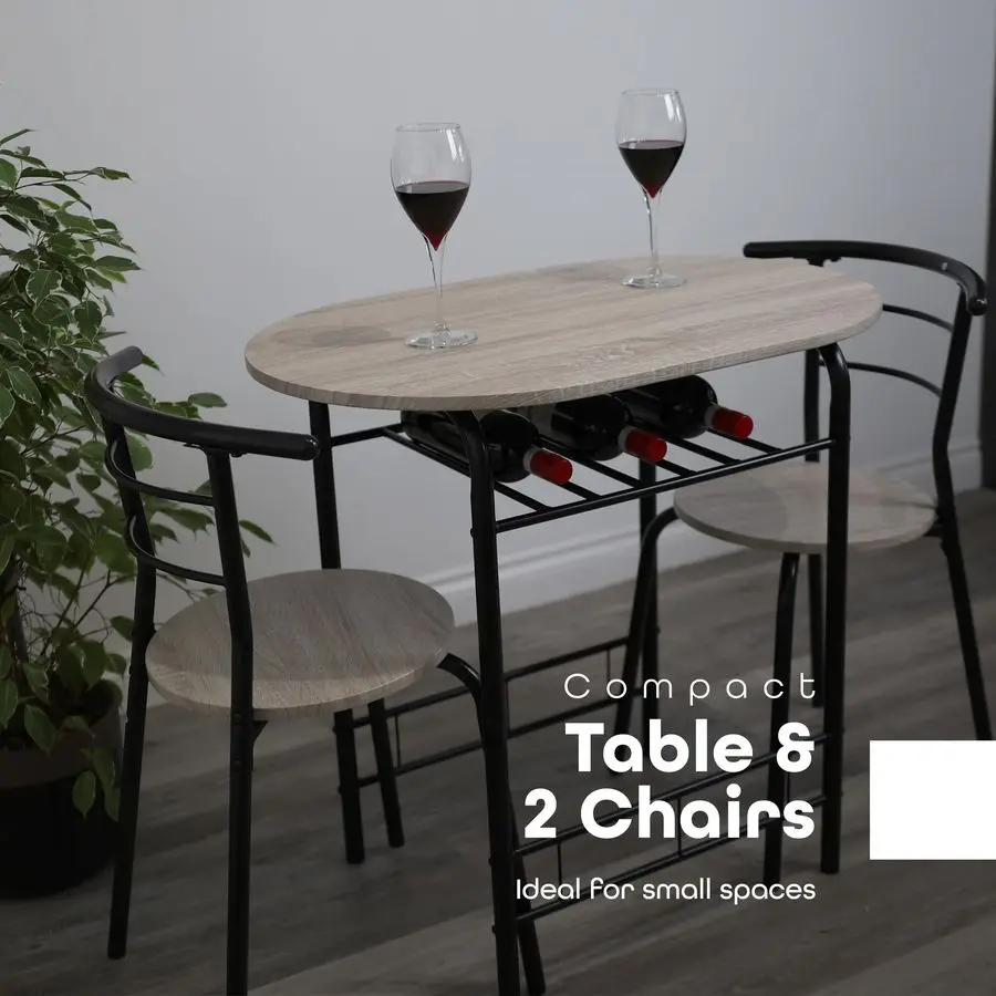 ADDITIONAL SHELF This 3piece table and chair set comes with a rack under the top, this breakfast table provides additional storage space for wine bottles, napkins, and other essentials, or you can remove the shelf to achieve a larger leg room.