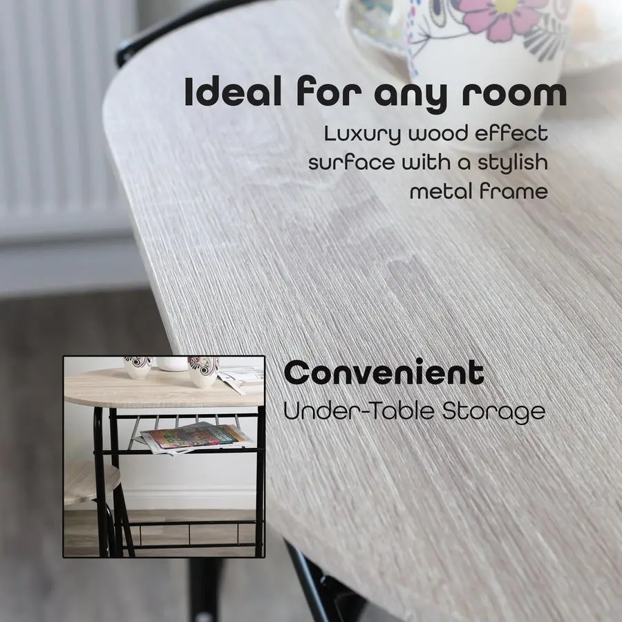 STURDY CONSTRUCTION The tabletop and seats are built with durable engineered wood, both with solid iron frames for a reliable set to last for years to come. This 3piece spacesaving wooden table and chair set is the perfect addition to small areas, such as dorms and apartments, for an intimate meal with your favorite guest.