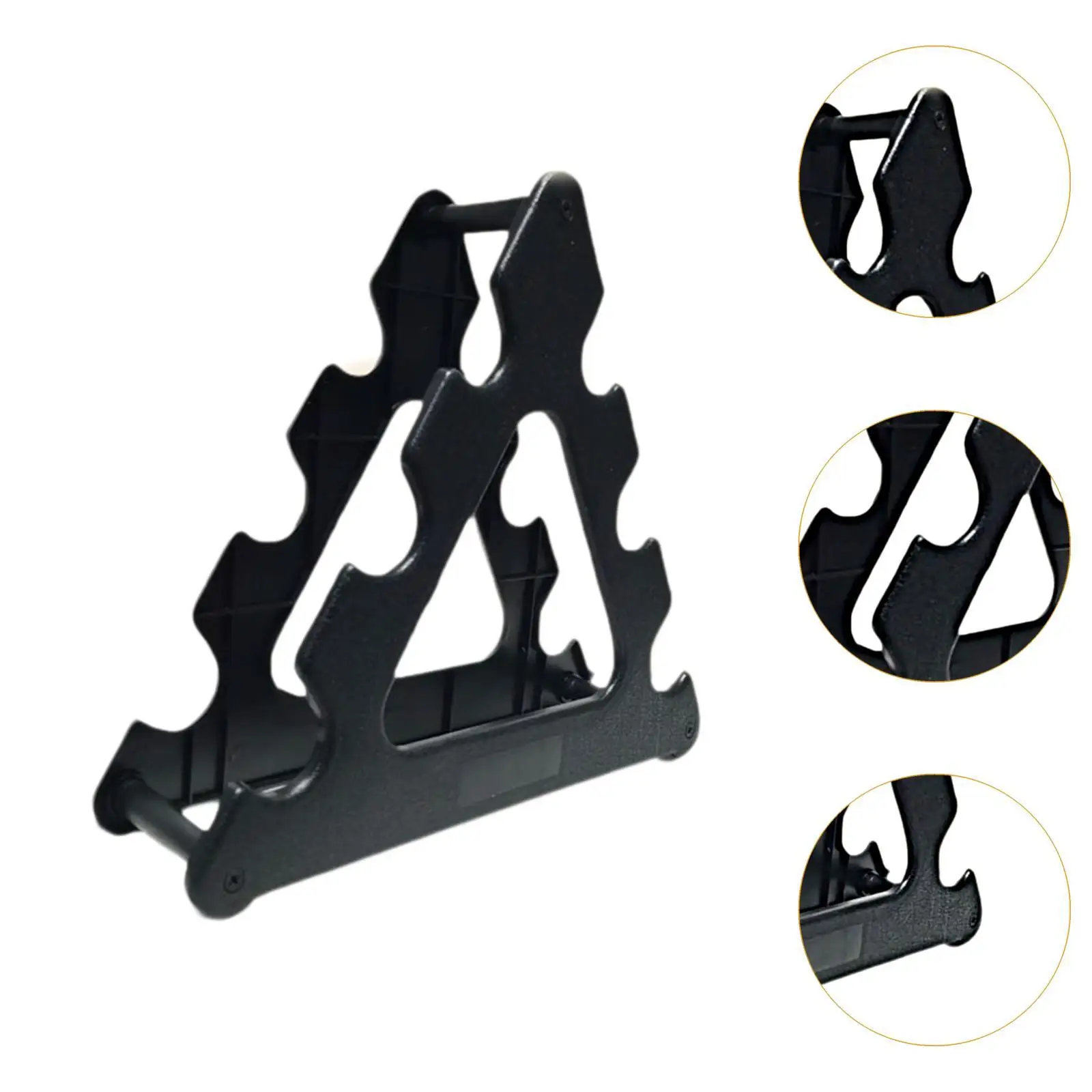 【Material】: Crafted from PP material, this triangular dumbbell rack is designed to be reliable and stable, ensuring long term use. It provides a secure place to store your dumbbells, ensuring they won’t tip over or roll away