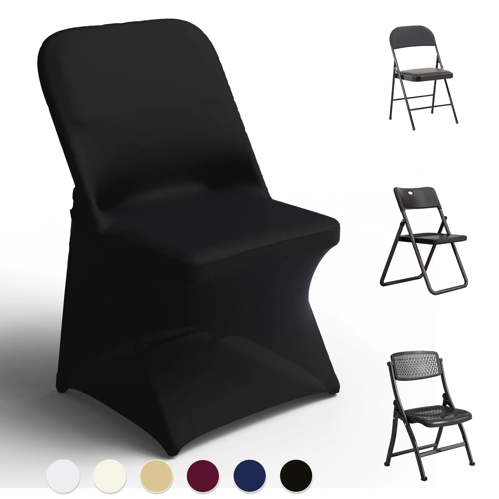 30/50/100PCS Stretch Spandex Folding Chair Cover for Wedding Party Dining Banquet Event white Black Removable Washable