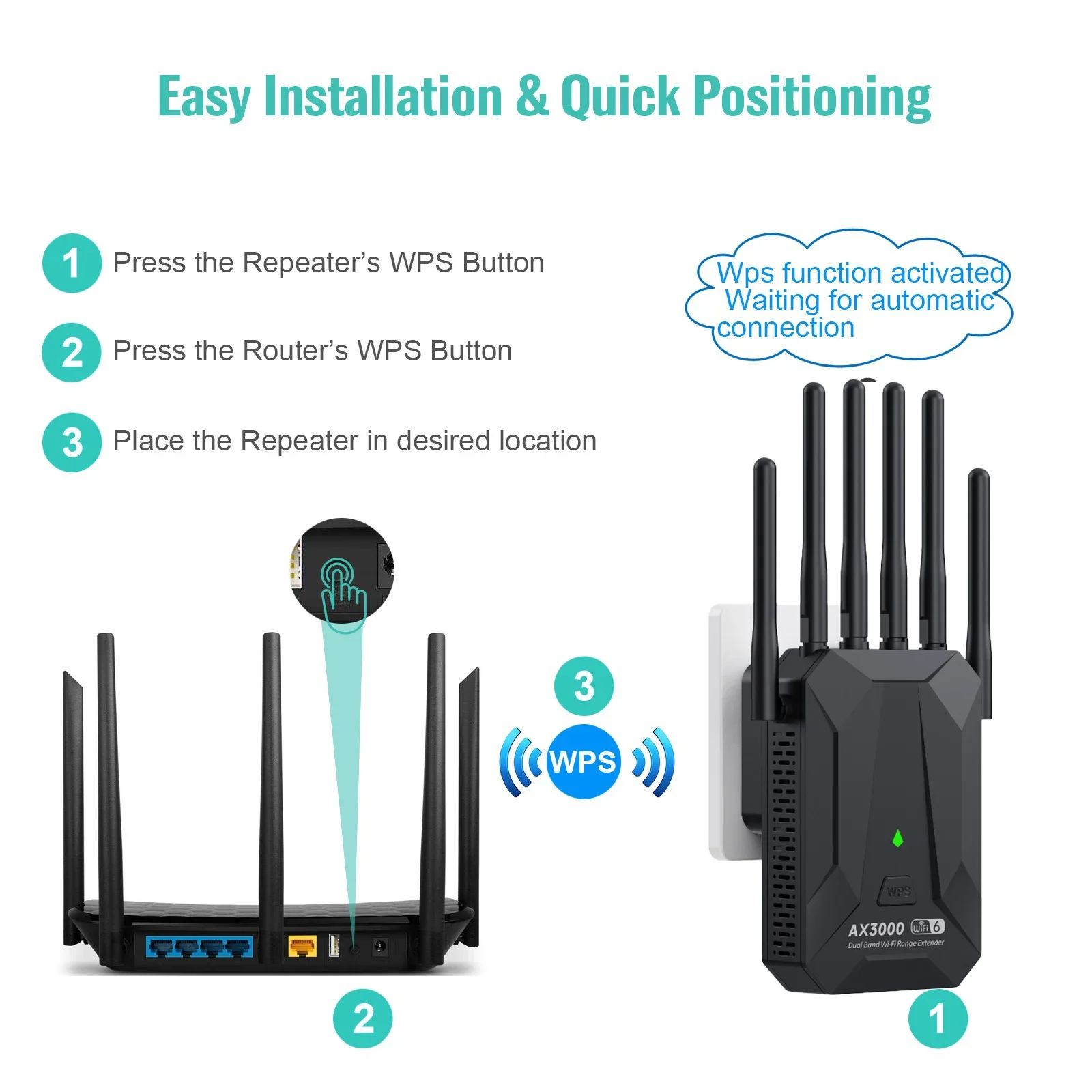 AX3000 WiFi 6 Repeater 3000Mbps Extender Signal Booster