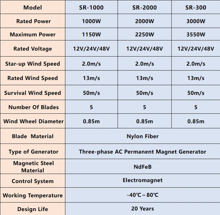 - Start-up wind speed: 2m/s
