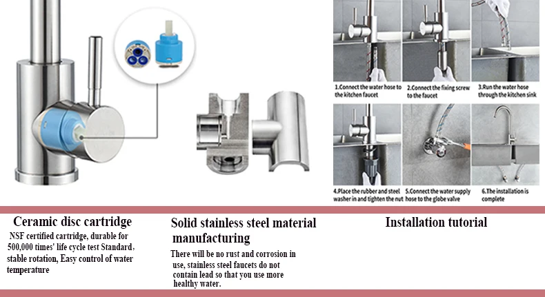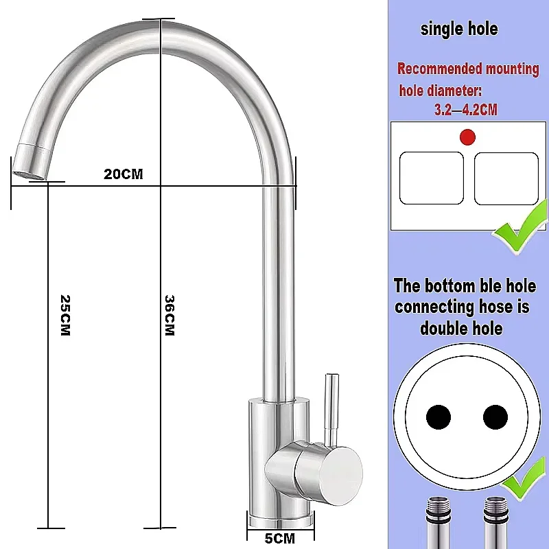 1.The kitchen faucet is made of high-quality stainless steel, which can easily cope with surface corrosion in humid environments, protect your and your family’s daily health, and provide G3/8 .1/2 . 9/16 caliber connecting hose, meeting all daily usage needs.