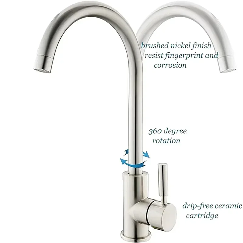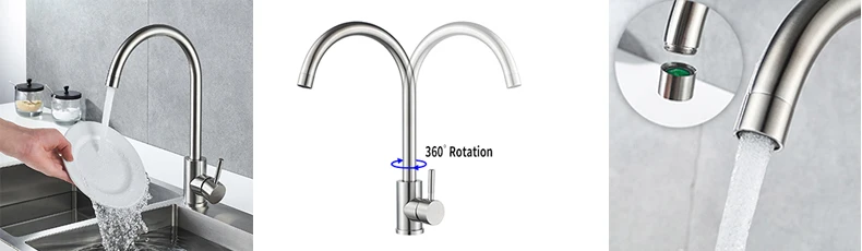2.Kitchen Sink Faucet comes with 360 degree swivel sprayer head is perfect for 1,1.5, 2 bowls kitchen sink, aerator can provide steady and smooth water flow without splash.Single lever controls water temperature and flow volume easily.