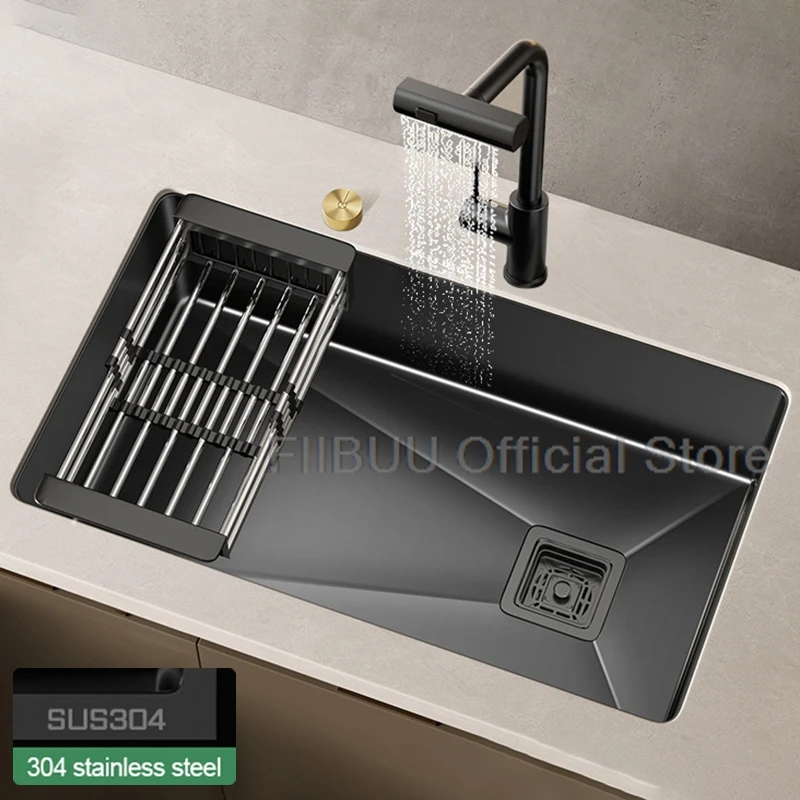 【High quality material】 Constructed from top-grade 304 stainless steel with enhanced thickness reinforcement, our sinks exhibit exceptional resistance to deformation. They offer remarkable hardness and durability. The application of nano-coating not only enhances wear resistance but also reduces bacterial residue accumulation.