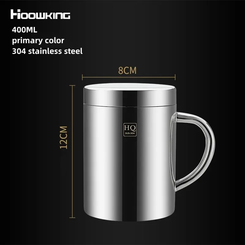 304 Stainless Steel Mug Cup Double Layer Anti-scalding With Lip Thermos Cup Coffee Milk Beer Water Tea Bottle Office Home Use