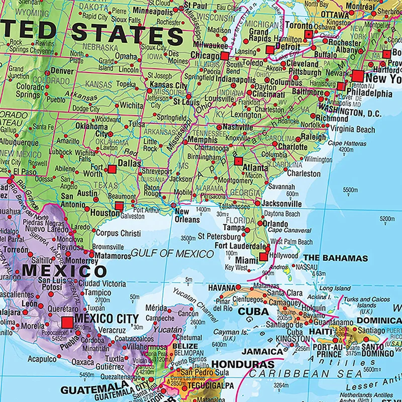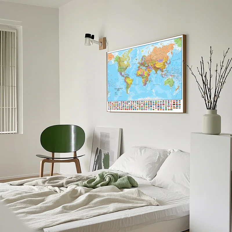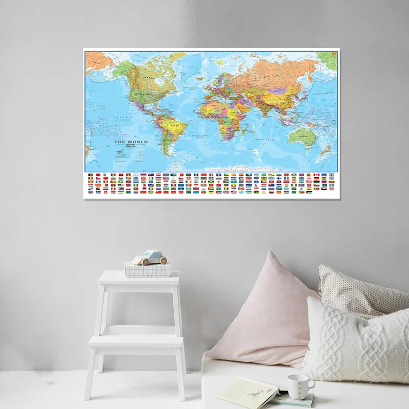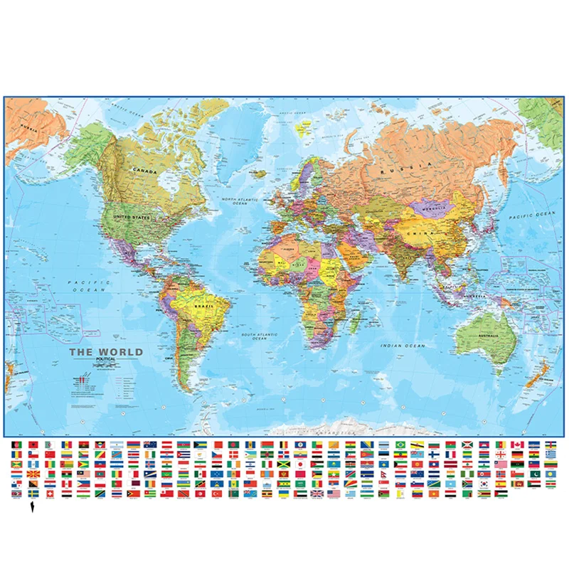 Compared to the traditional method of printing maps on laminated paper we have adopted a new process of printing maps on cloth. The advantage is that it allows our maps to be stored better during transportation.UP-TO-DATE: completely current world wall map poster