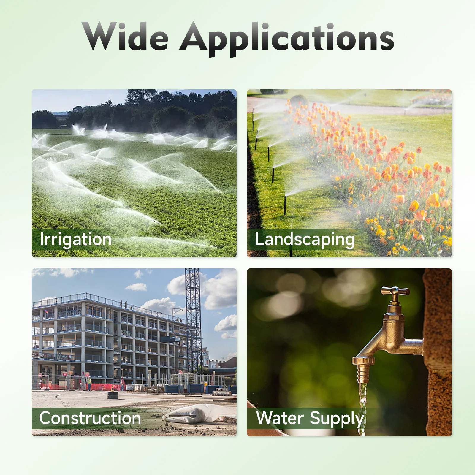 This product can be used in irrigation, landscaping, cleaning, construction, water supply, and other fields, and can be widely applied in homes, garden design, and urban maintenance.