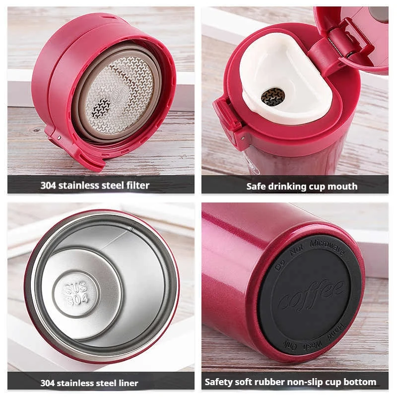6. Safe material, can be loaded with multiple beverages, non-toxic and odor-free, use with confidence7. Coffee cups provide an easy-to-open button and snap the lid for easy access.8. Equipped with a removable filter for bulk tea.9. suitable for most cup holders. Rust-proof and leak-proof, this multi-purpose travel mug with a snap cover is suitable for children, teenagers, students and the elderly.10. Ergonomic design, easy to grasp.Package included: