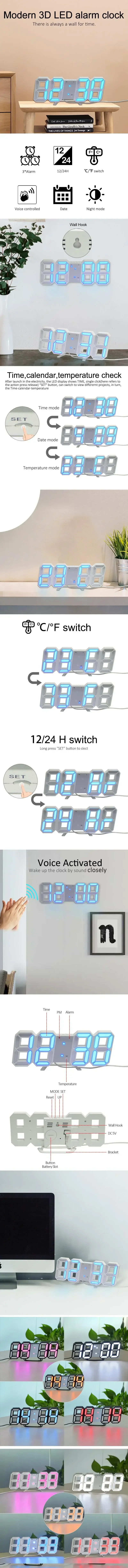 [Wall clock / desktop clock] A beautiful and fashionable digital clock that can also be used as a wall clock or desktop clock. It can be placed in various scenes such as living room, bedroom, office, desk, dining table, TV cabinet, etc. it has notches on the back for mounting, stand is removable, can be easily hung on the wall as a wall clock, or place it on the desktop arbitrarily.