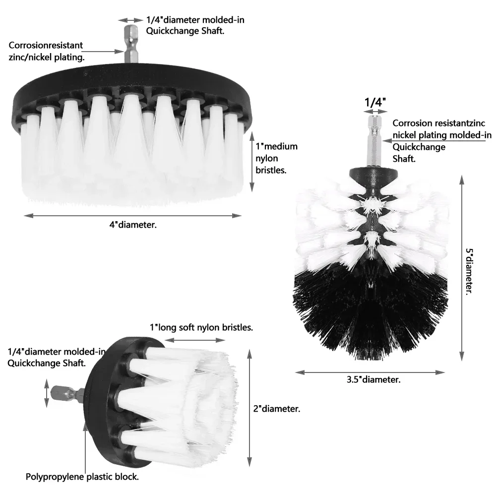 This drill brush has hex shaft that fits most corded/cordless drills.