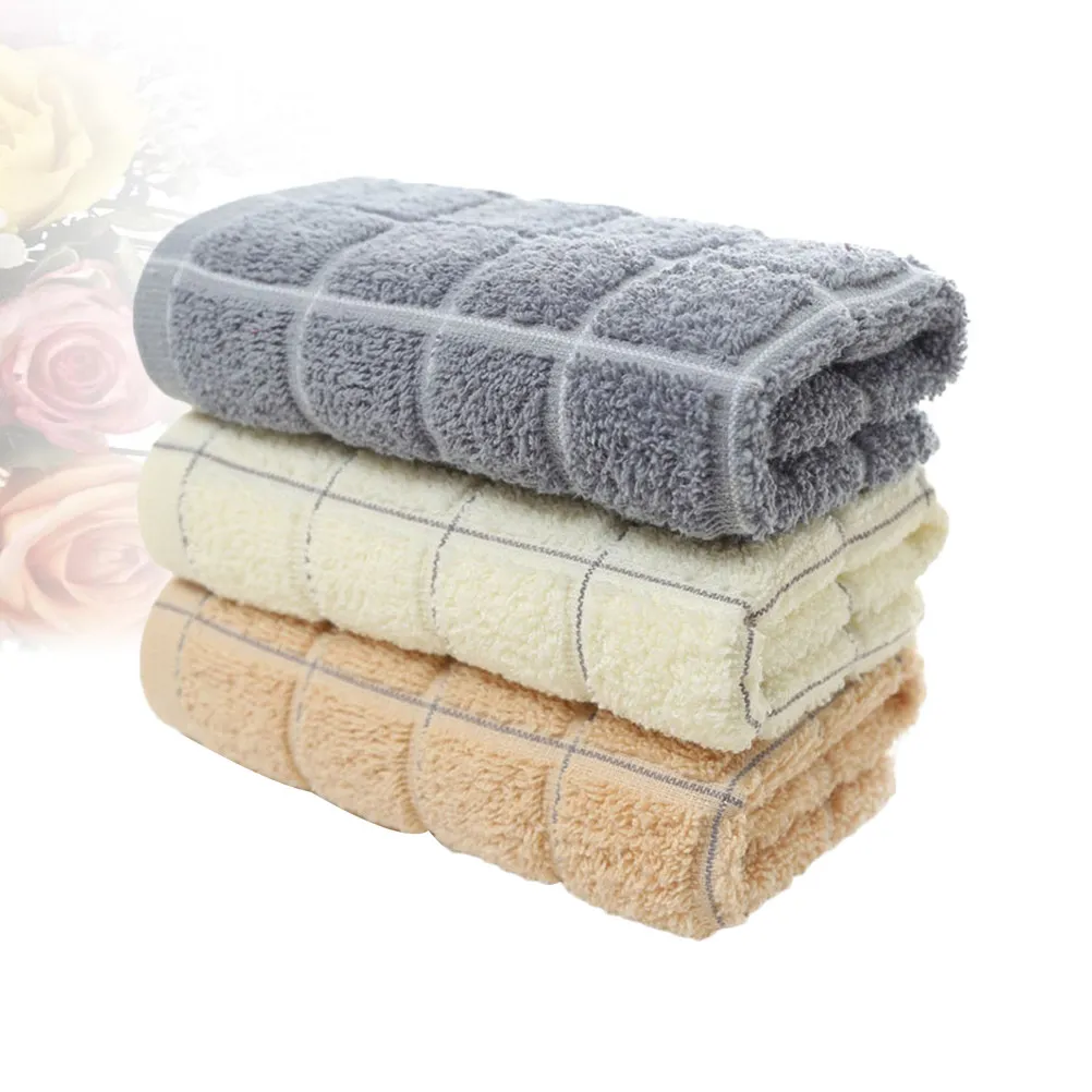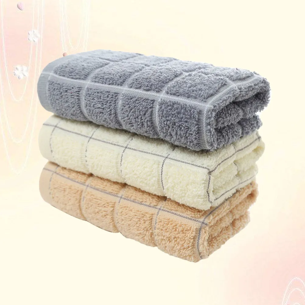 3Pcs Pure Cotton Absorbent Plaid Hand Towels Skin-Friendly Face Washcloths 75x35cm Beige Khaki Grey for Bathroom Kitchen Barber