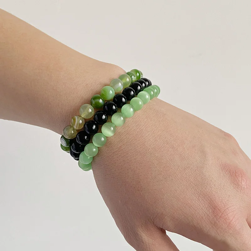 very beautiful 3 bracelets. fit perfectly on the wrist. They look natural, cool, and moderately heavy.