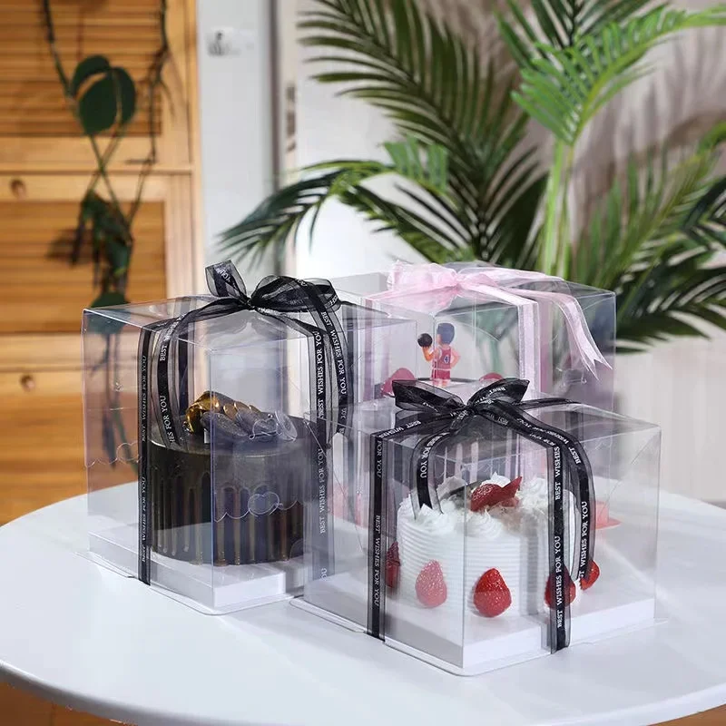 – The bottom are colored, the middle part of cake box is clear.