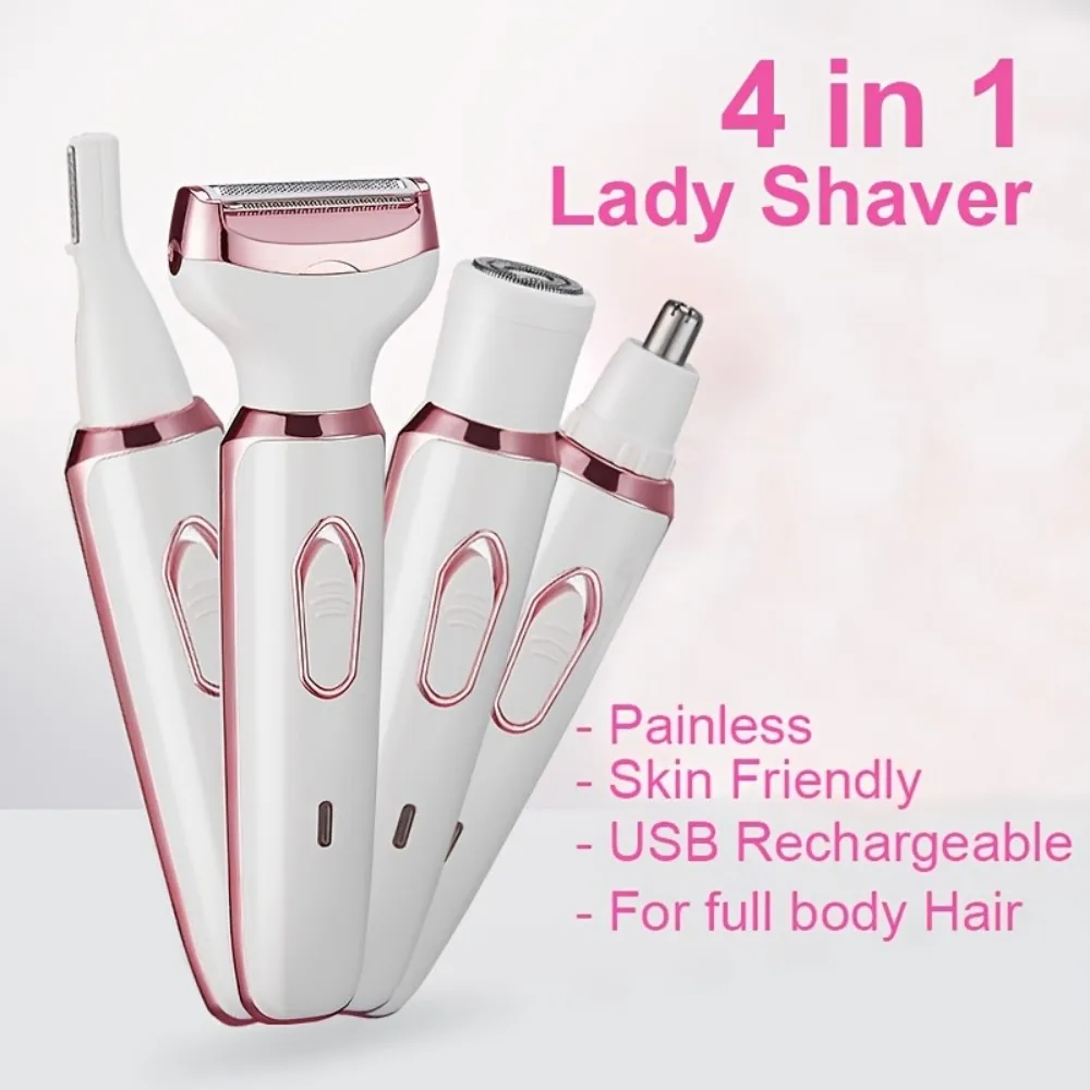 4 in 1 Electric Hair Removal Device Painless Epilator For Face Nose Legs and Underarm Bikini Trimmer Removal Shaver Cleaning Set