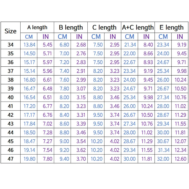 | Color | EUR34, EUR35, EUR36, EUR37, EUR38, EUR39, EUR40, EUR41, EUR42, EUR43, EUR44, EUR45, EUR46, EUR47 |