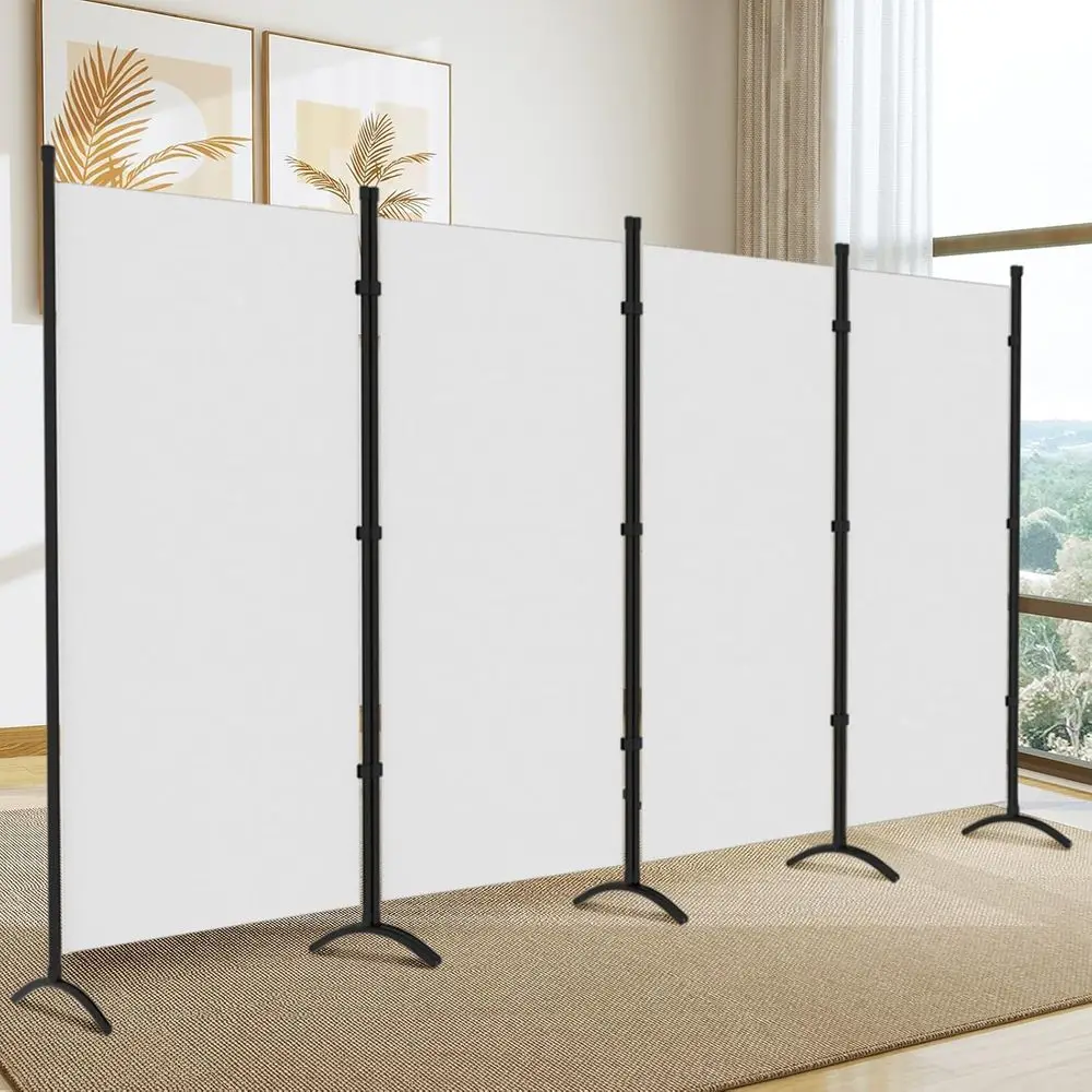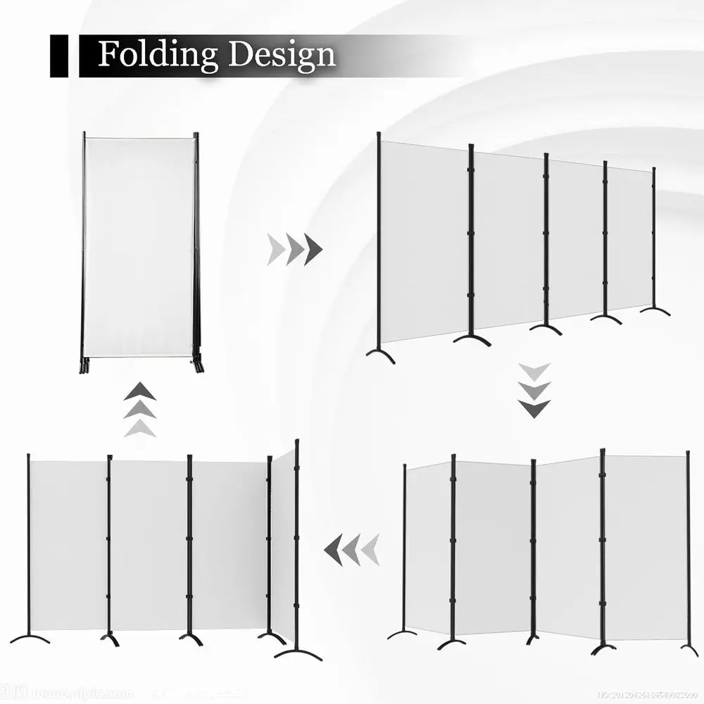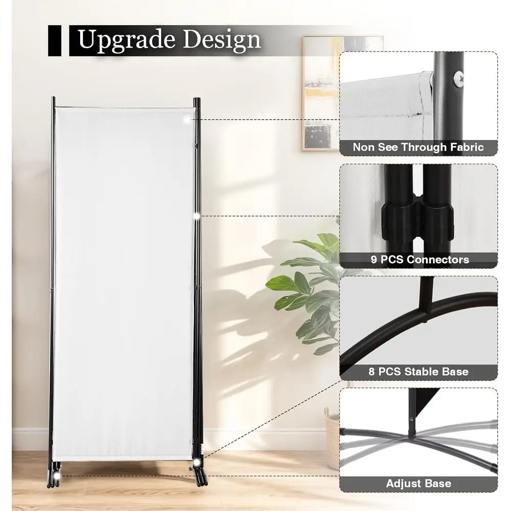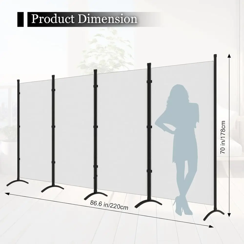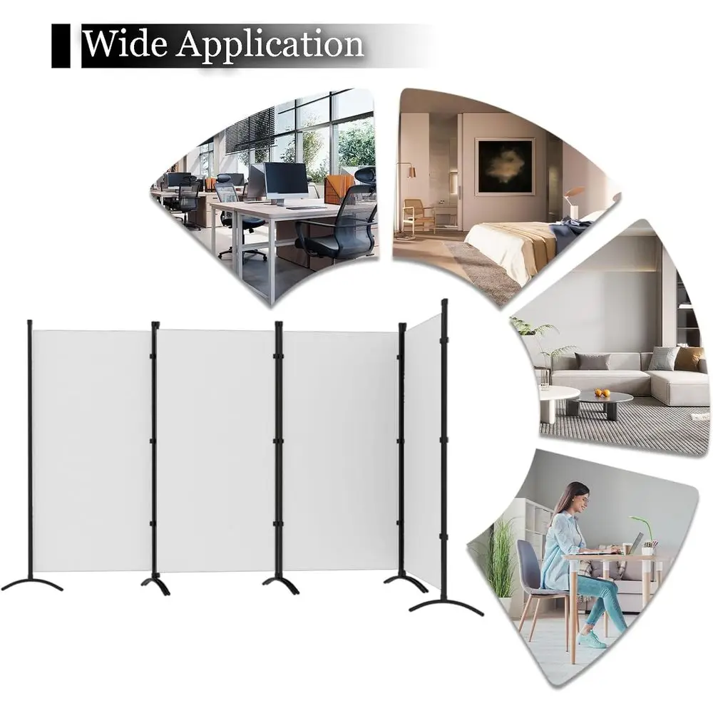 The room divider is crafted with powder-coated steel poles, ensuring rust resistance and durability for long-lasting use. Its eight bases contribute to a more stable structure, preventing any shaking. Made from high-quality fabric, it provides a non-see-through barrier for absolute privacy and easy room separation. The foldable and portable design allows for flexible use of the 4-panel divider, with an overall dimension of 86 x 70. It comes with easy assembly instructions and all necessary accessories for a quick setup. This versatile room divider is suitable for various spaces, including offices, bedrooms, living rooms, and any area where personal space is desired.