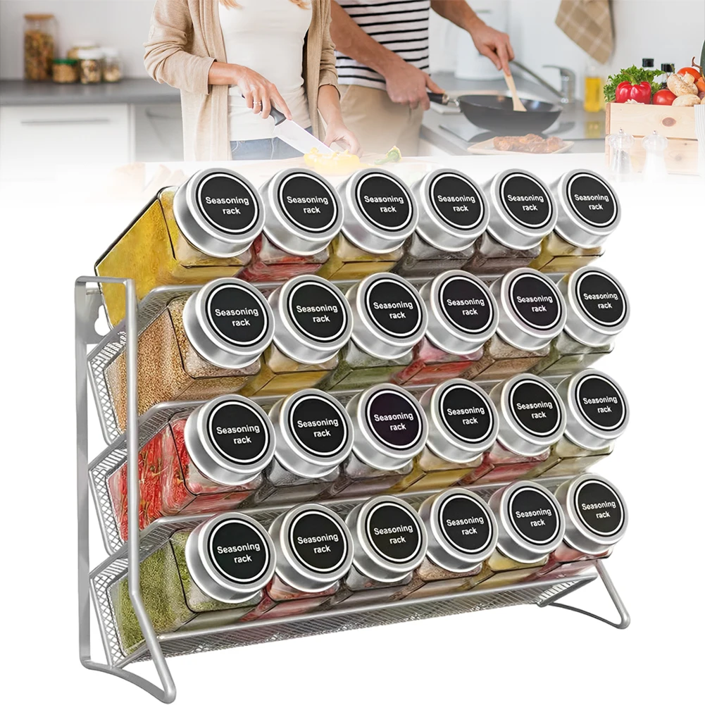 4 Tier Spice Jar Rack Wall Mounted Container Holder Carbon Steel Spice Seasoning Organizer Stand No Condiment Bottle