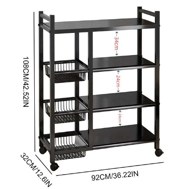 4-Tier Storage Rack Utility Rack Shelf Basket Movable Metal Shelf for Kitchen Bathroom Organizer 92*32*108cm