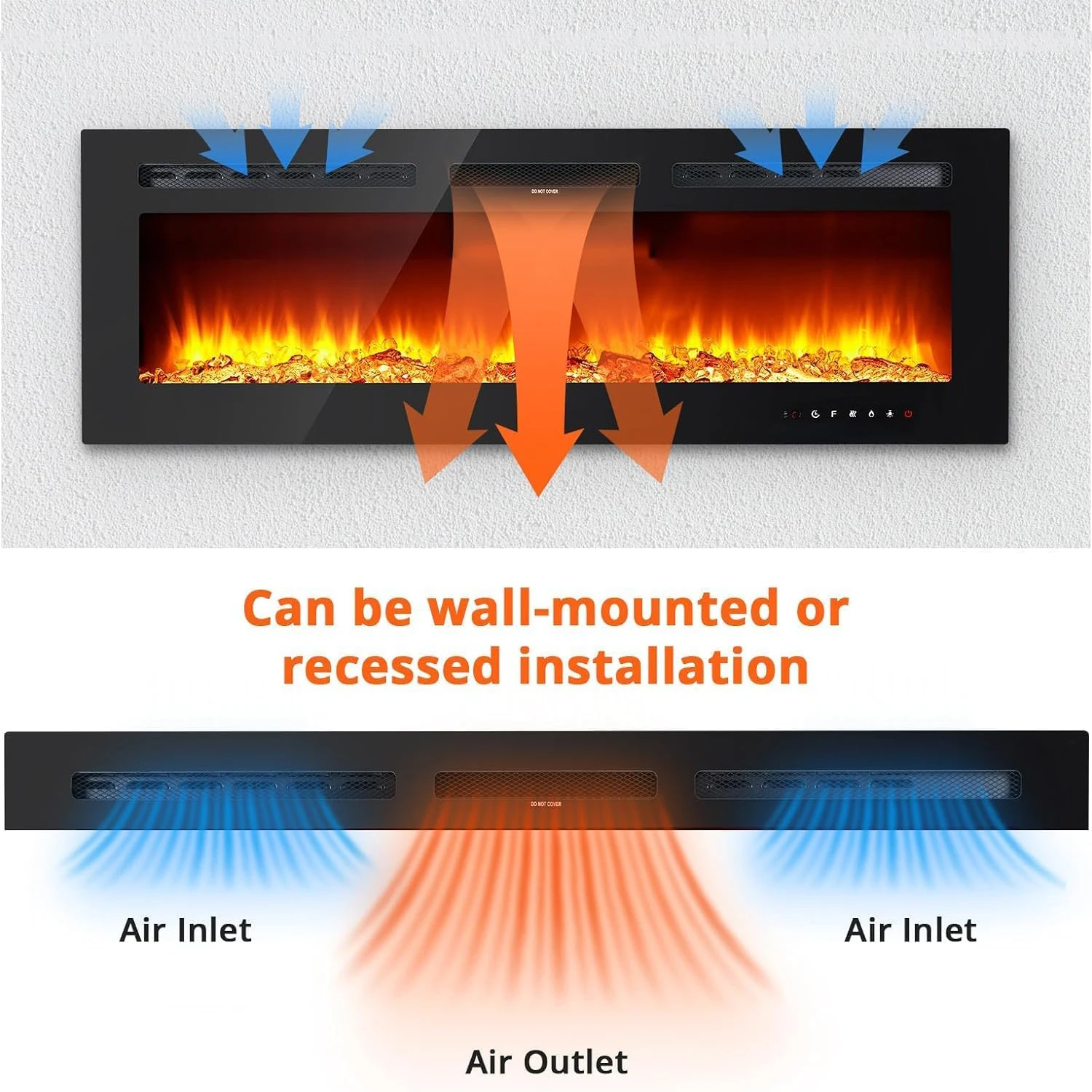 🔥【Versatile Installation Options】The electric fires flame effect wall mounted offers multiple installation options, allowing you to mount it on the wall, flush mount, or semi-flush install depending on your space and design preferences. Whether you're looking to create a modern focal point or add warmth to an existing setup, this electric fire can be tailored to your space with ease. Perfect for any room, it enhances both function and style in one elegant package.