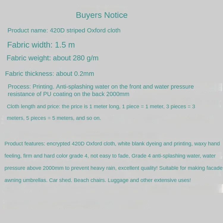 - Fabric name: 420D striped Oxford fabric
