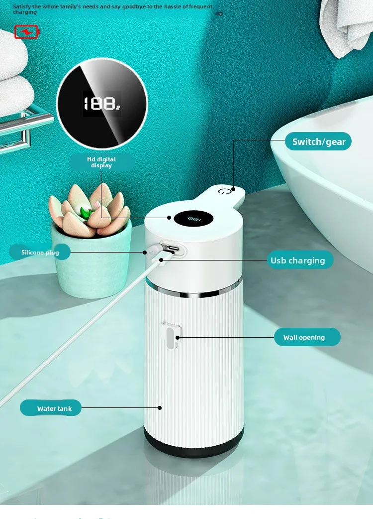 High-Performance Fast Charging & Long-lasting Battery Life: It uses a pure copper high-efficiency motor, and the kitchen soap dispenser is equipped with a 1200mAh rechargeable lithium battery. It can be used more than 6,000 times on a single charge. It supports Type-C fast charging, which can be fully charged in 2-3 hours, saying goodbye to frequent battery replacement.
