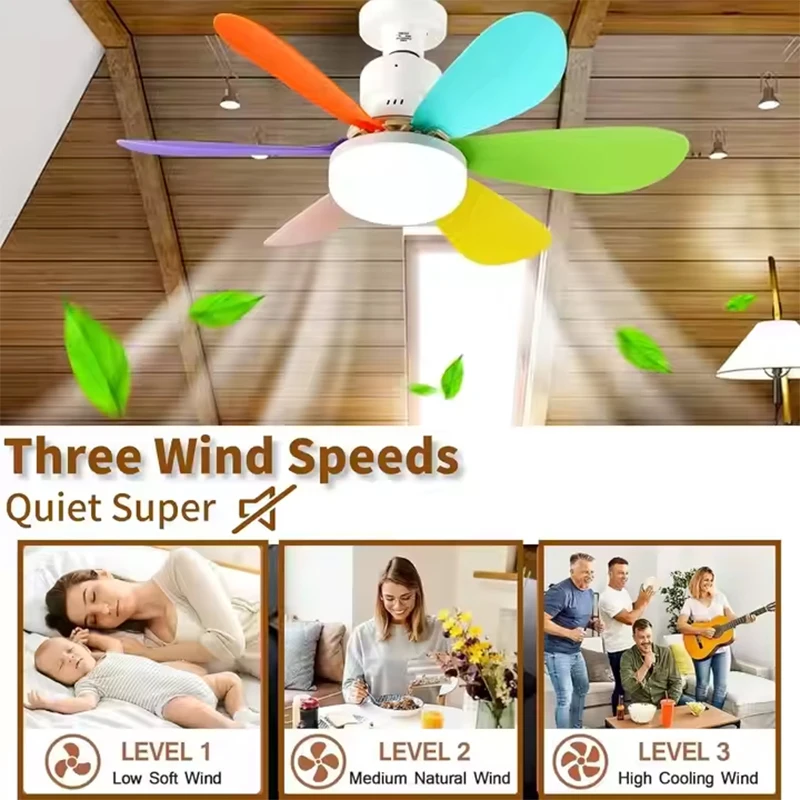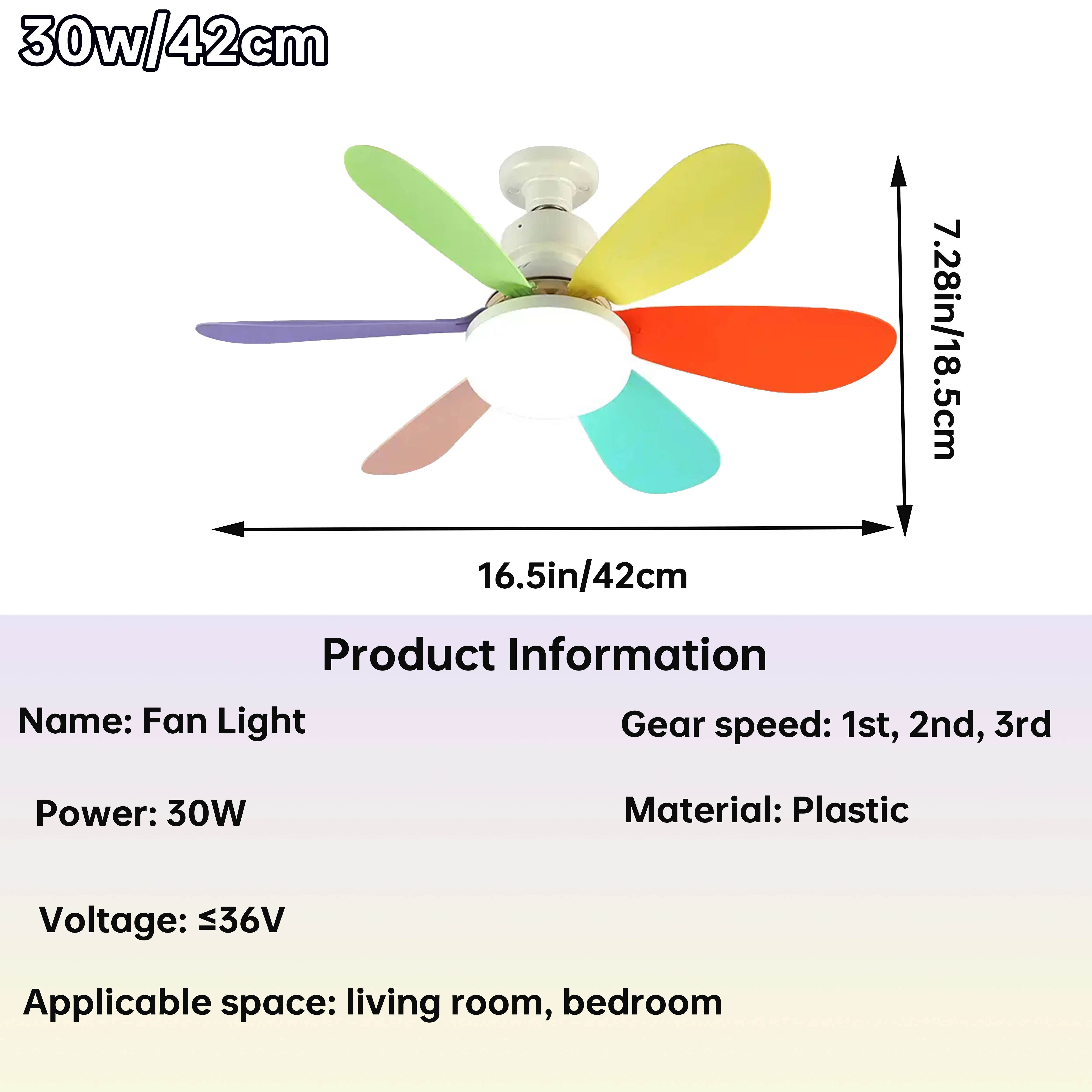 42cm Silent Color Ceiling Fan with LED Light and Remote Control Fan Light, 30W Fan, Ceiling Fan with E27 Socket.