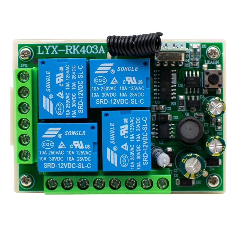 433Mhz RF Wireless Remote Control Switch AC 110V 120V 240V 220V 30A 4CH Relay For Garage Door Light Lamp Door Access System