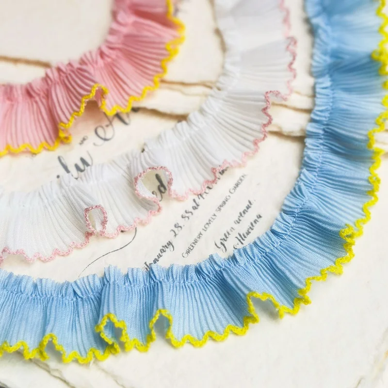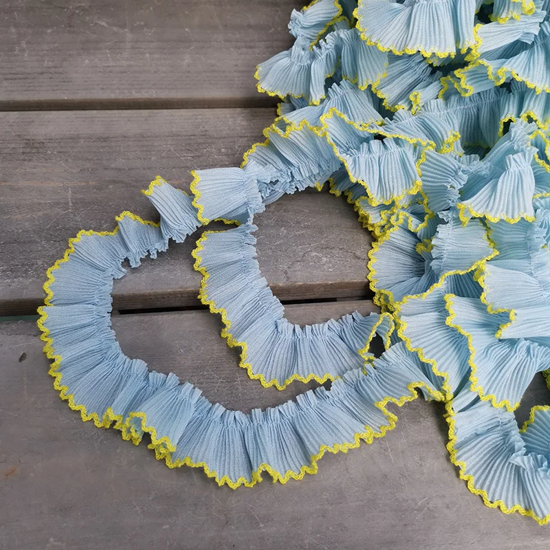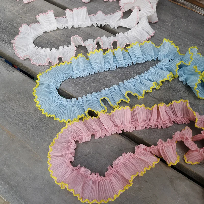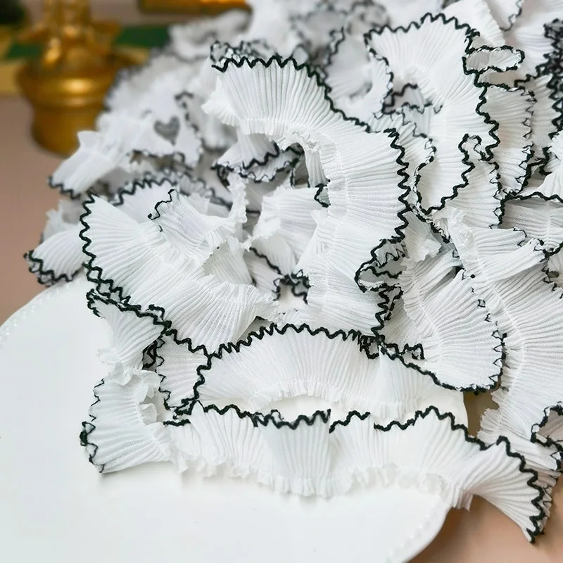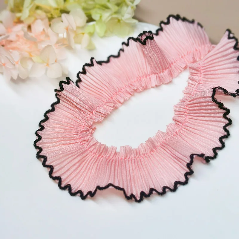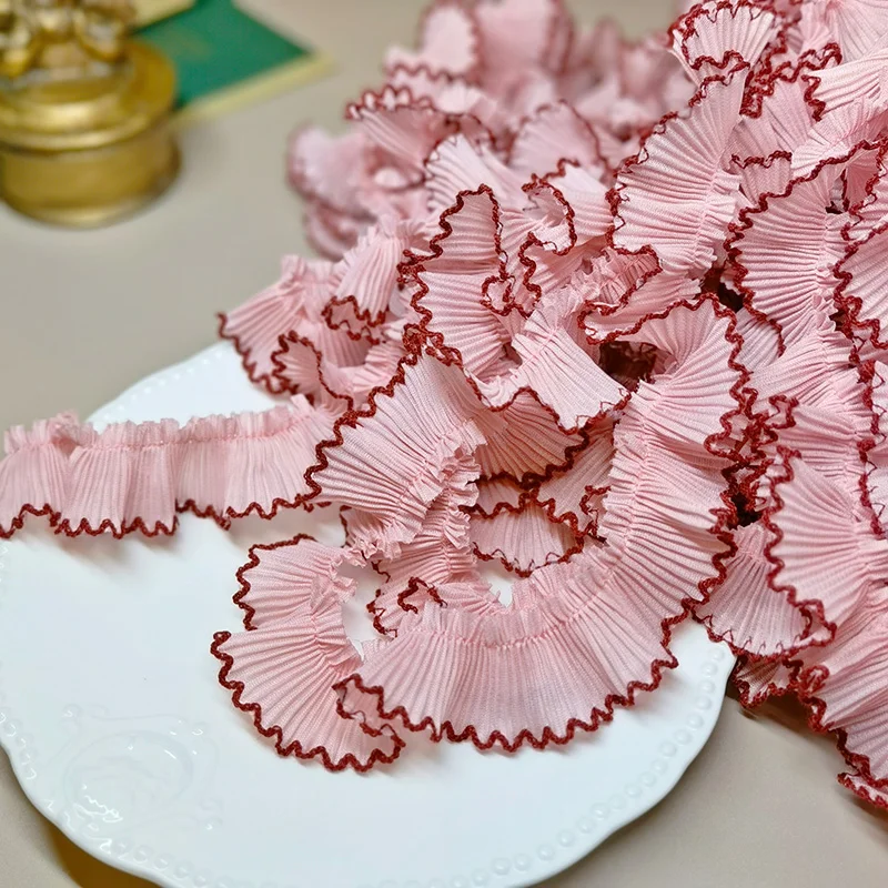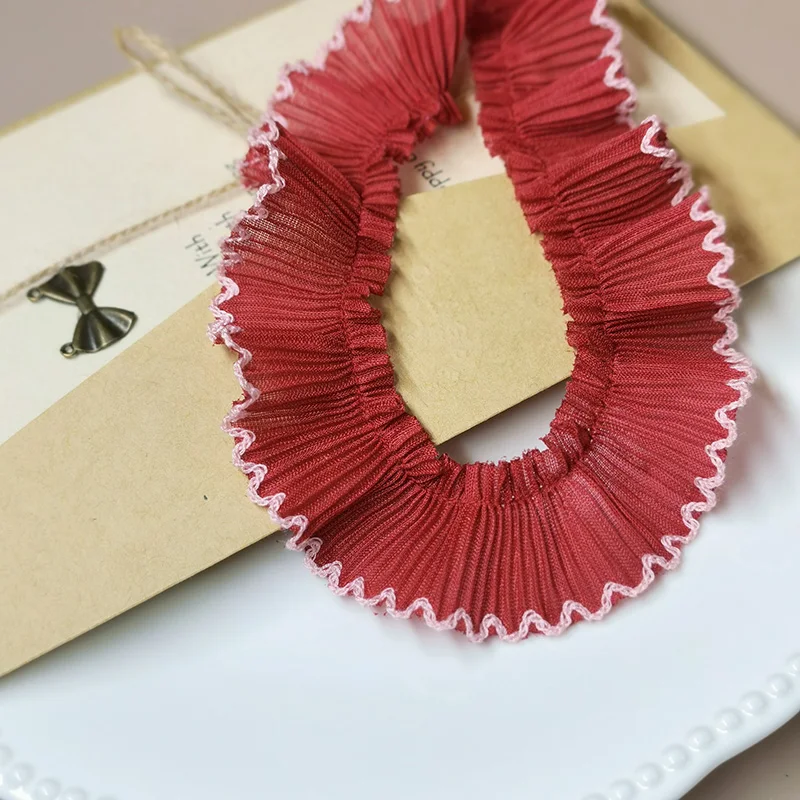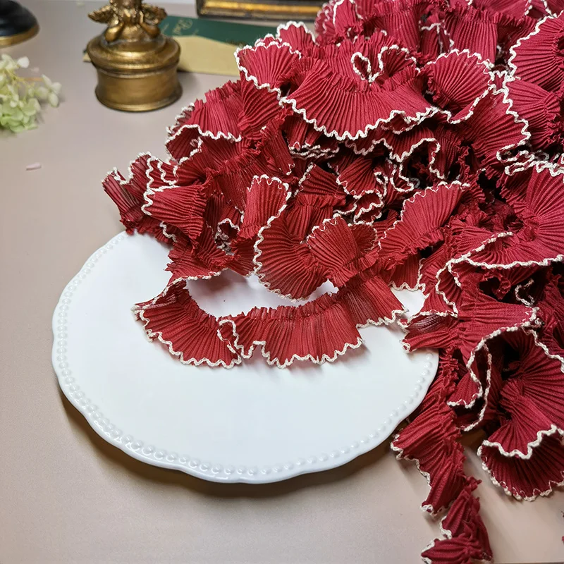 It was a very beautiful ruffle just like in the photo. The red trim color was also great, and I am satisfied with the product as it met my expectations.