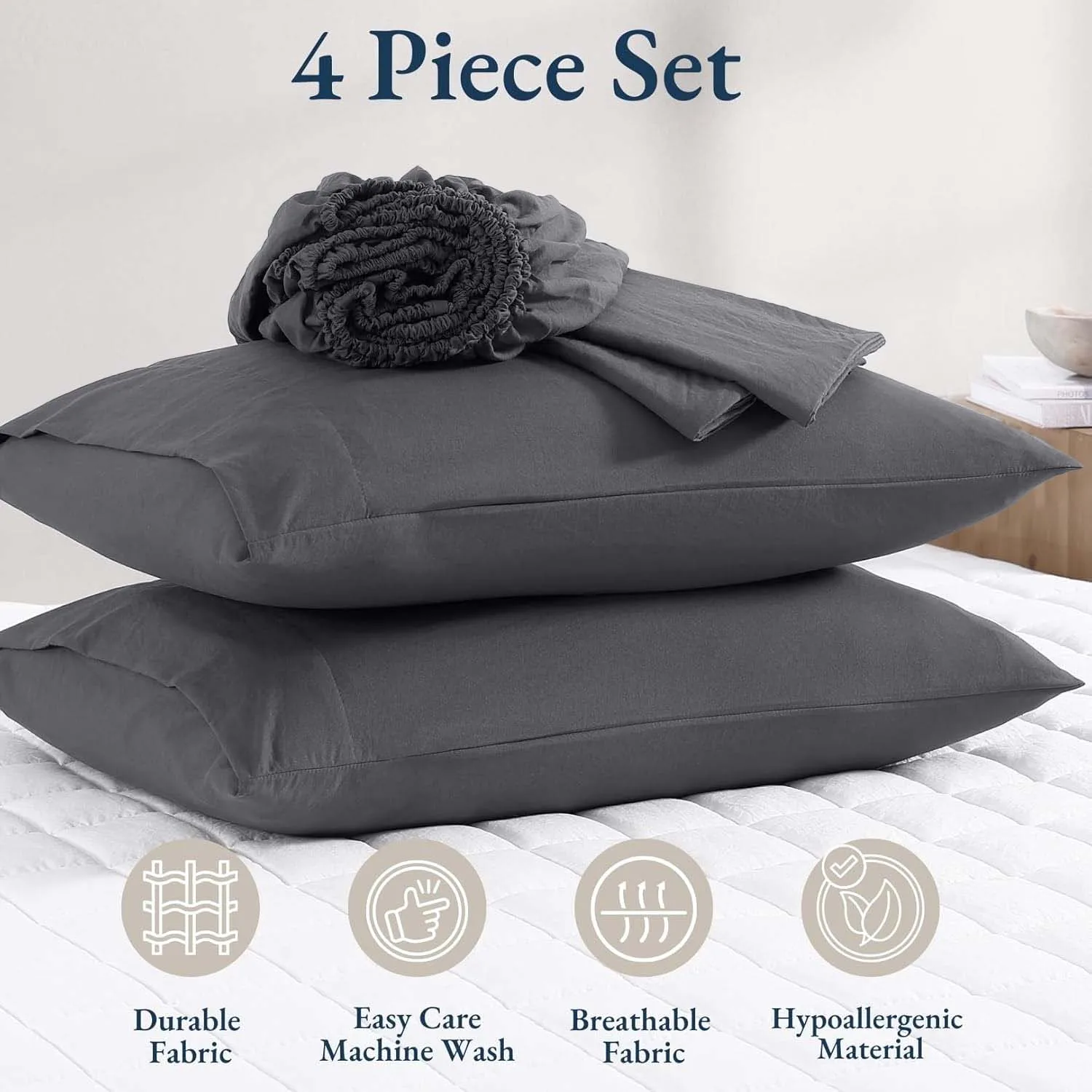 Premium 4-Piece Bedding Set | Deep Fitted Sheet & Brushed