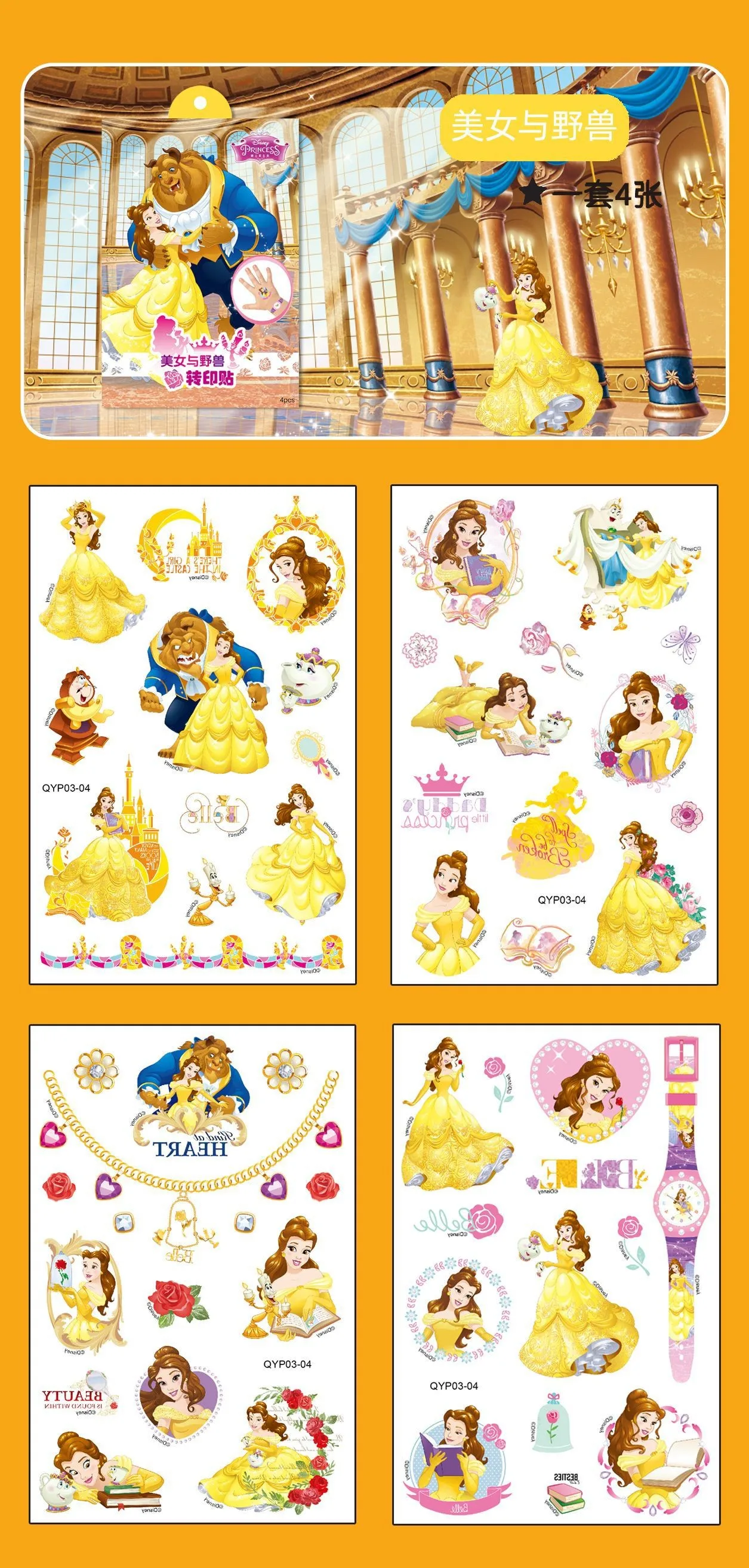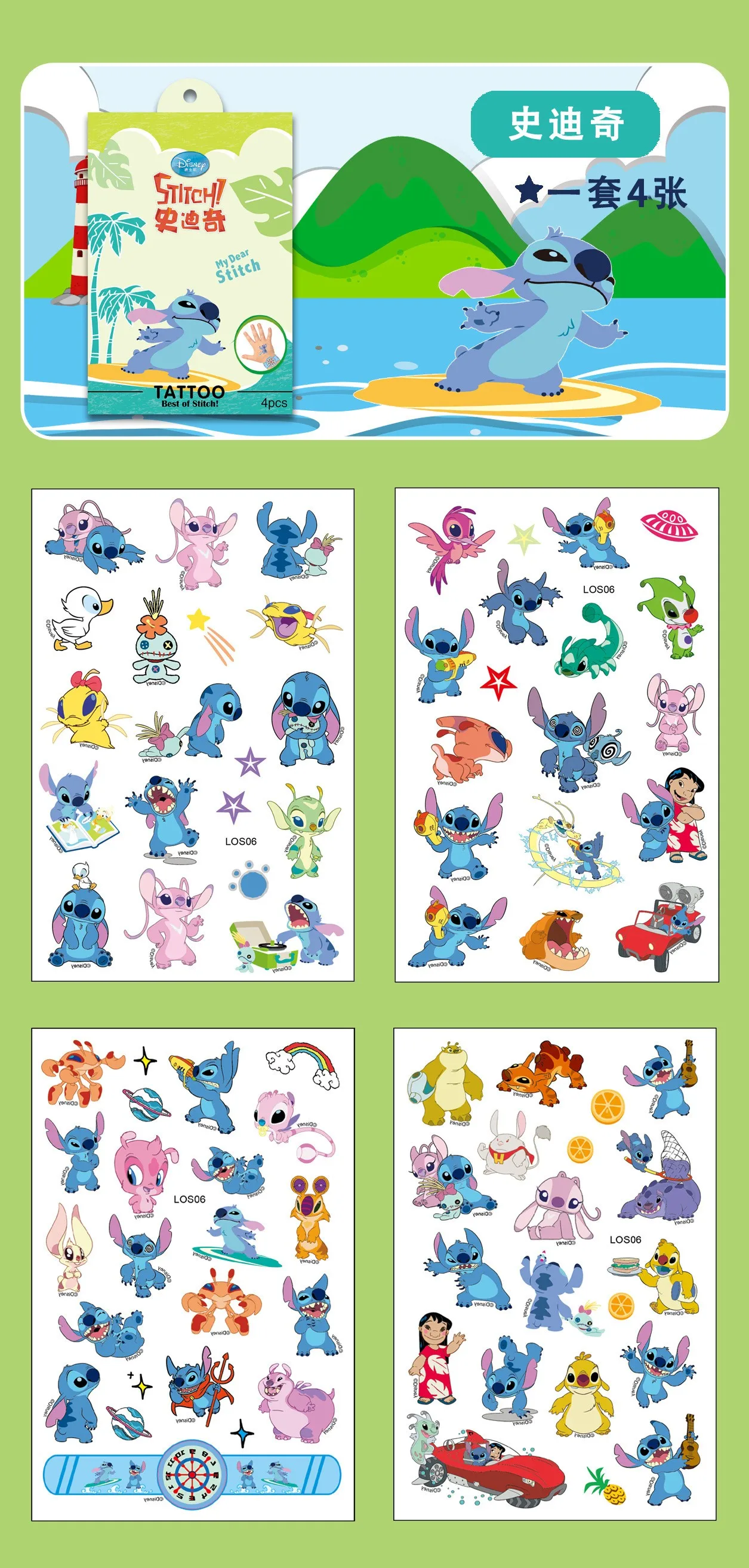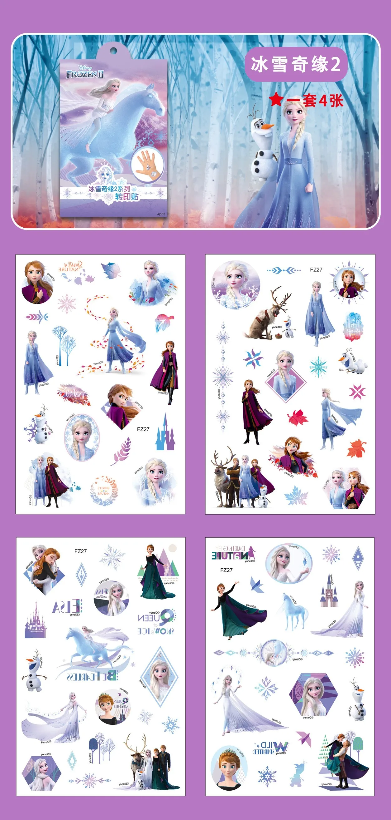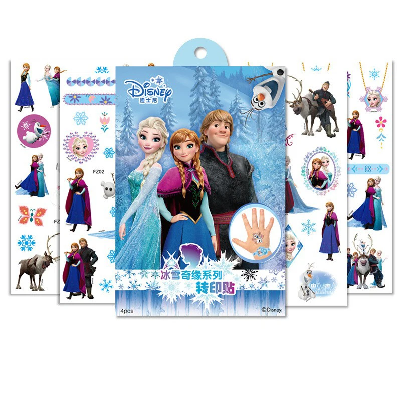 4pcs Disney Princess Elsa Tattoo Sticker Frozen Character Stitch Cartoon Children's Stickers Toy Christmas Gift