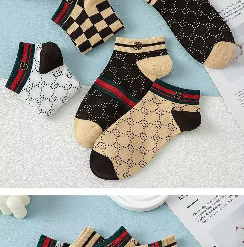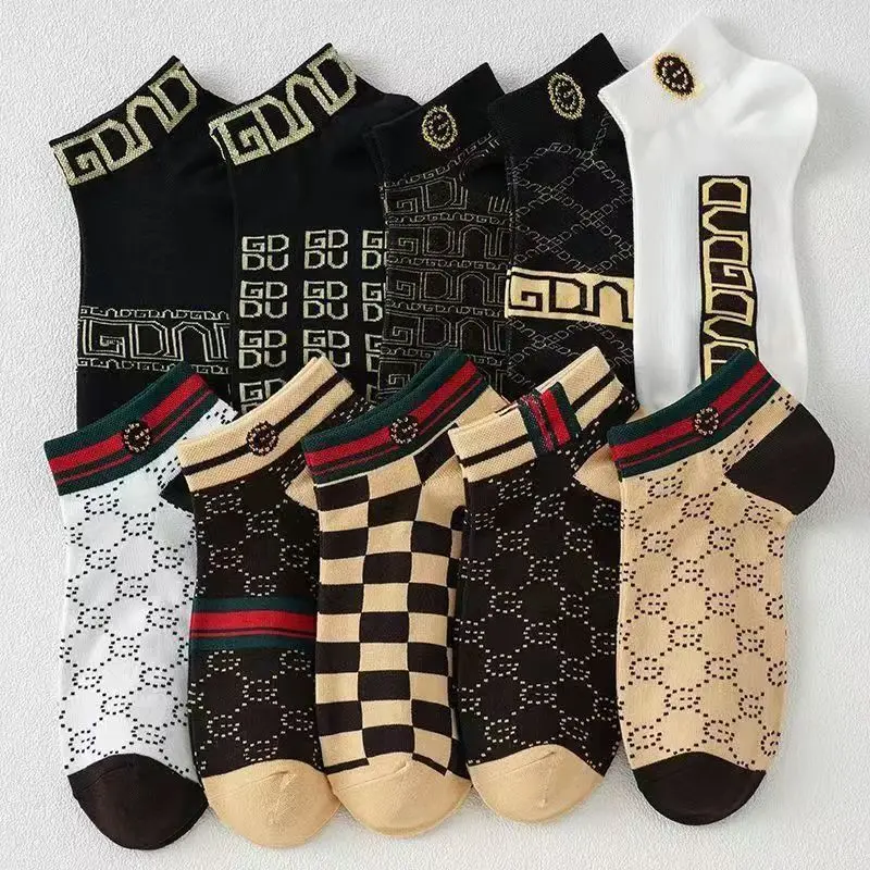 5/10/20 Pairs Mens Socks Short Breathable Luxury Socks Designer Brand Low-Cut Socks Fashion Trendy Socks Geometric Pattern