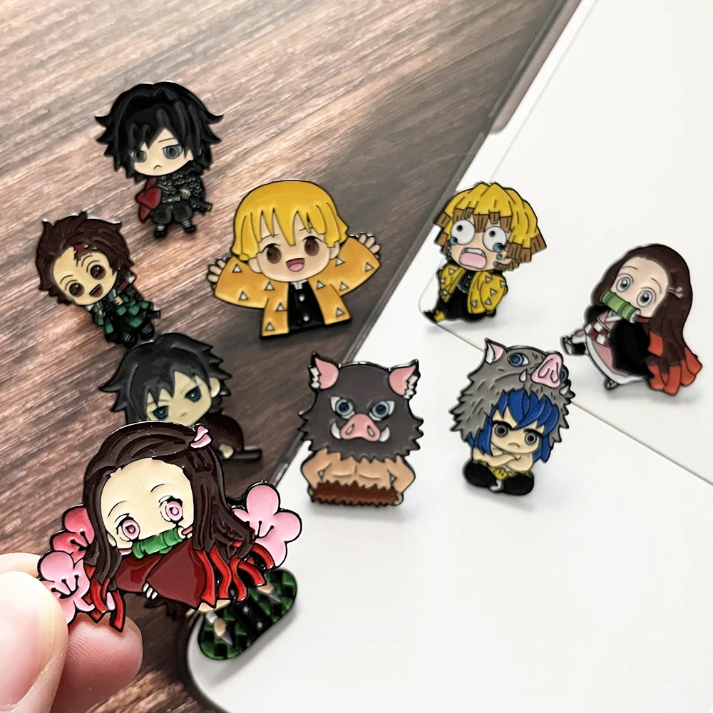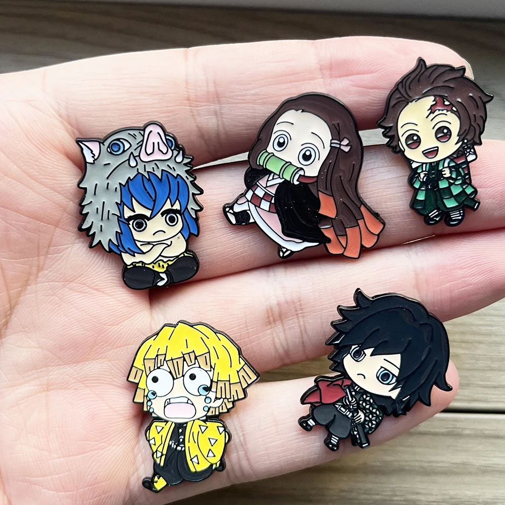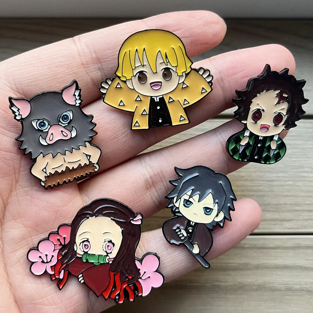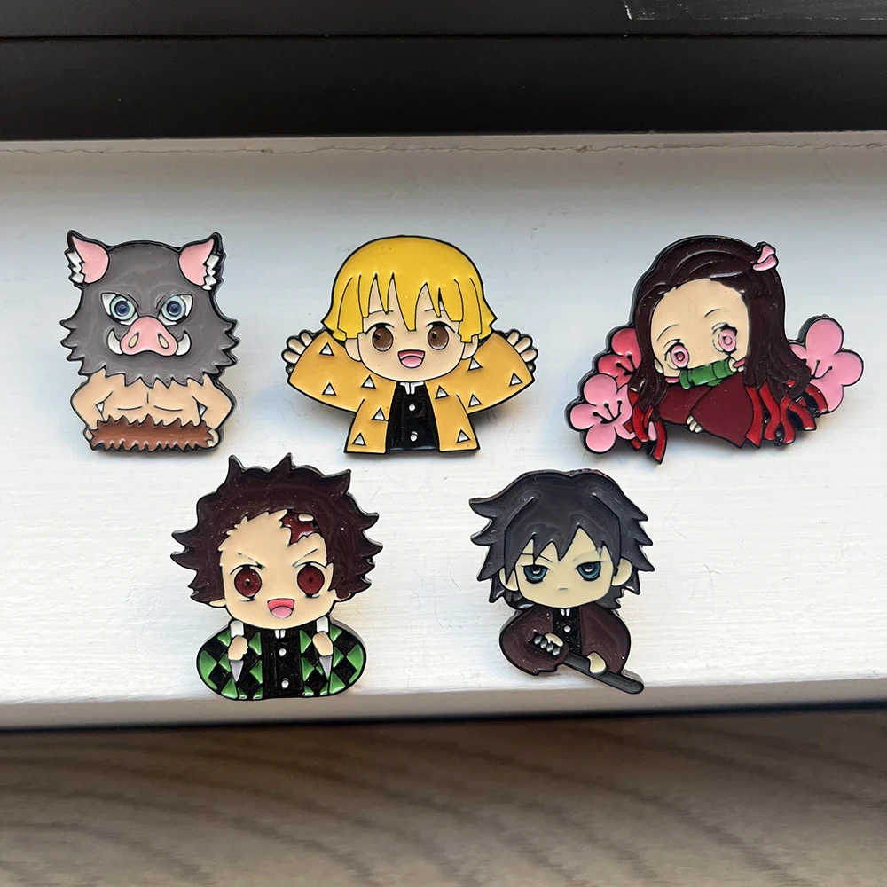 5 Pcs Demon Slayer Brooches Set, Anime Cosplay Lapel Pins, Cute Cartoon Character Badges for Clothing Backpack Jewelry Gift
