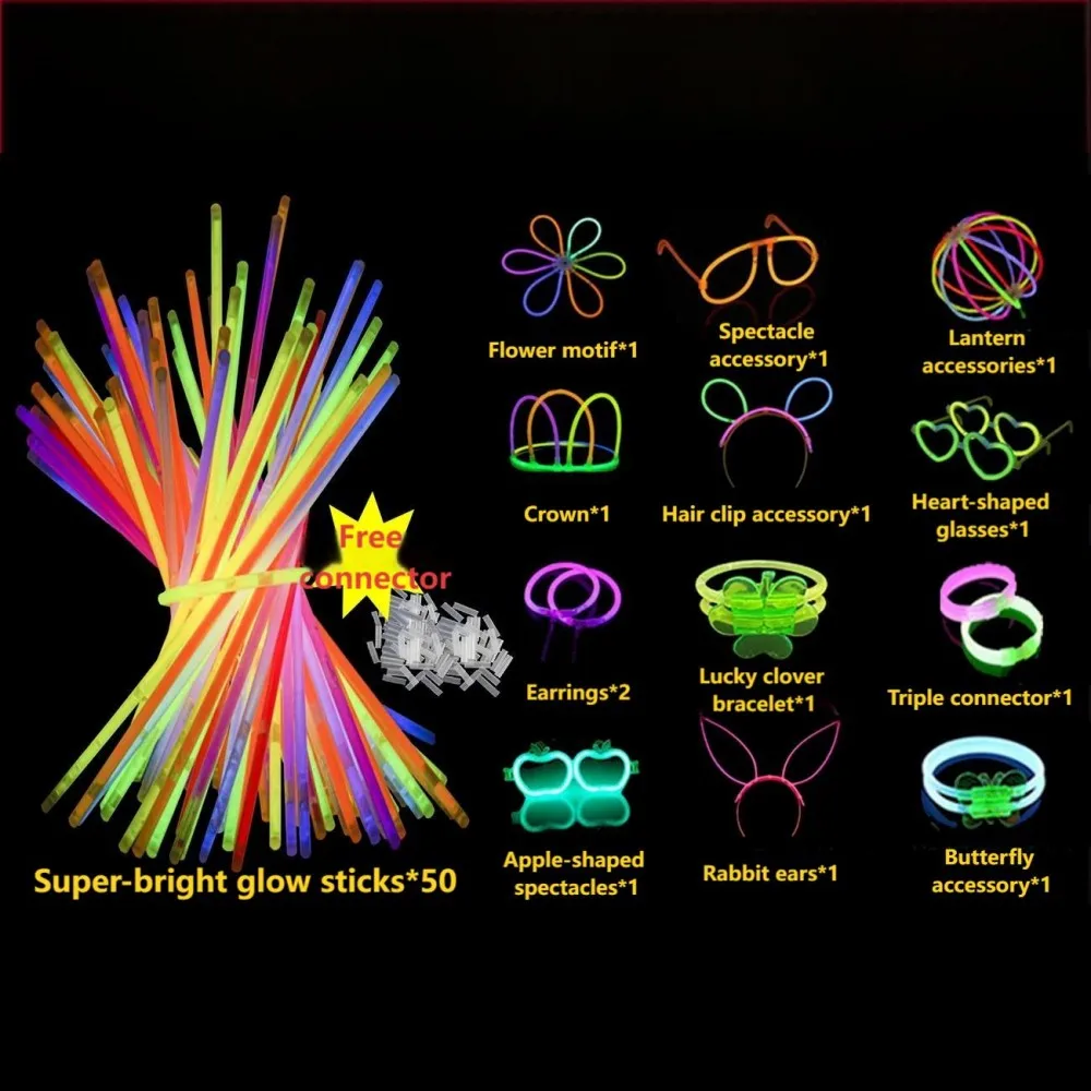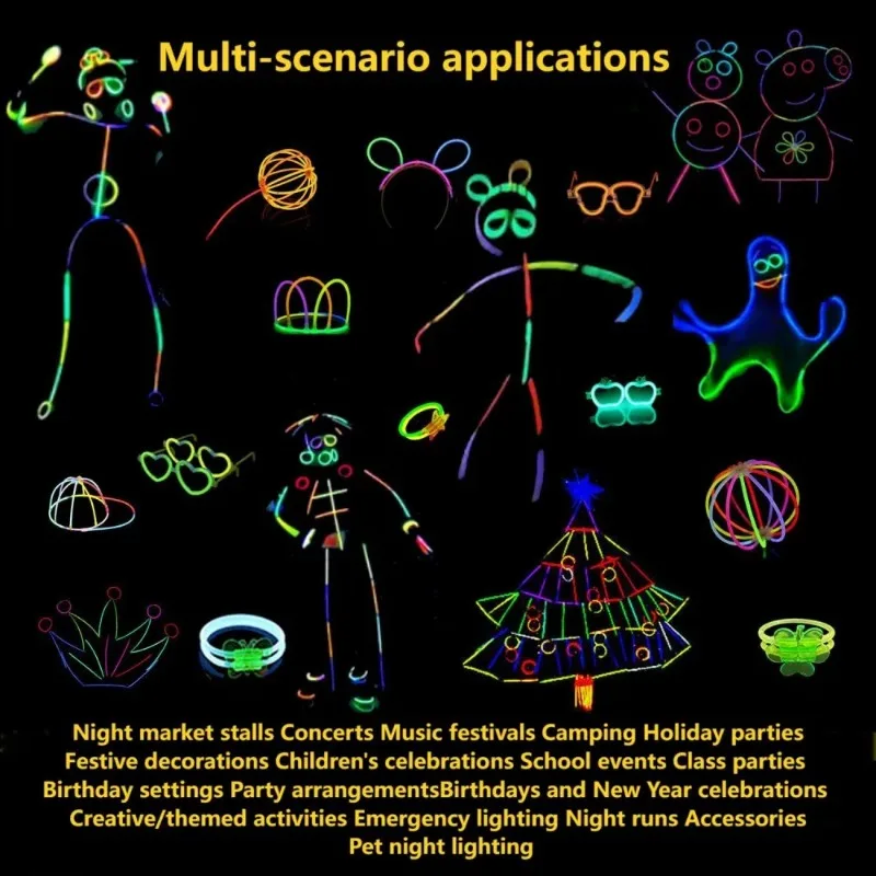 Creative Play: Let your imagination run wild – connect glow sticks to make shapes, wear accessories, and create unique looks.