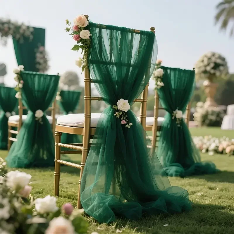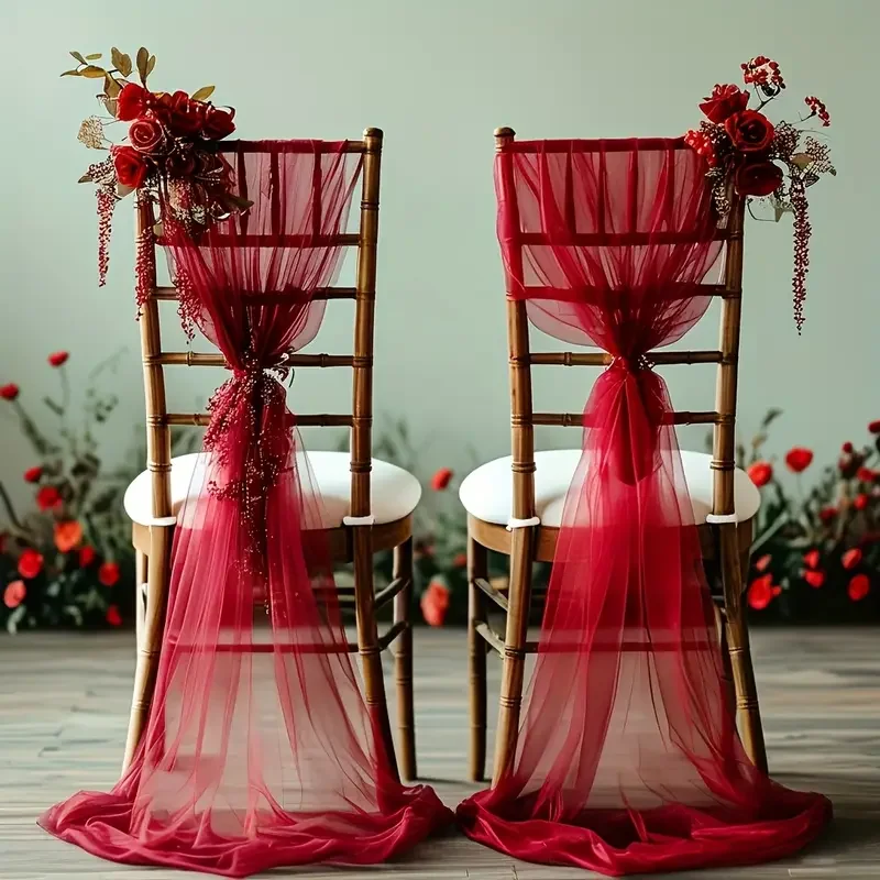 50-10pieces 200x75cm gauze Chair Back Veil Wedding Chair Sashes Wedding Chair Bows Covers Ribbon Party XMS Aisle Chair Decor