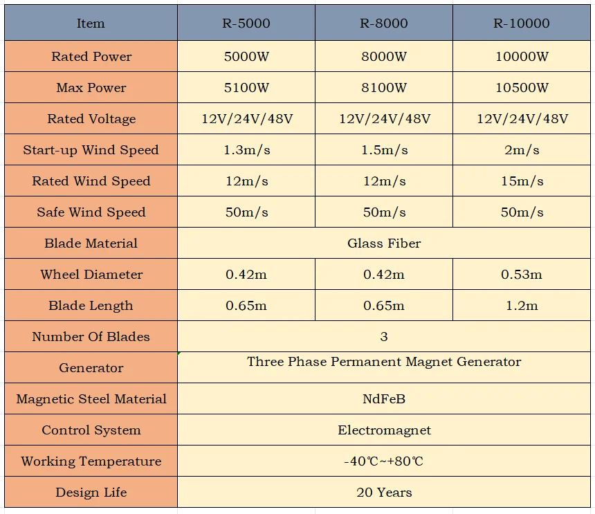 - Power: 5KW-10KW Wind turbine generator