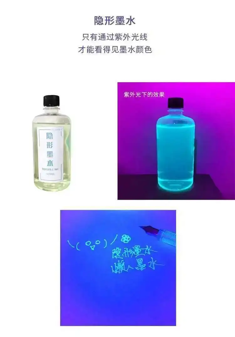 Pls kindly note that only the Transparent ink is invisible ink( the writing only can be seen under the UV light)