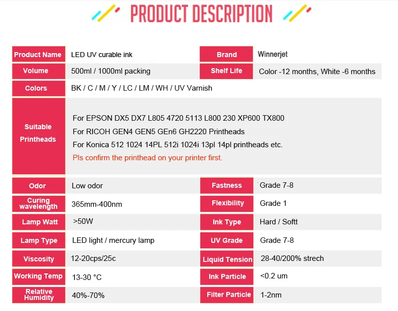 - Product Name: UV INK; LED UV INK