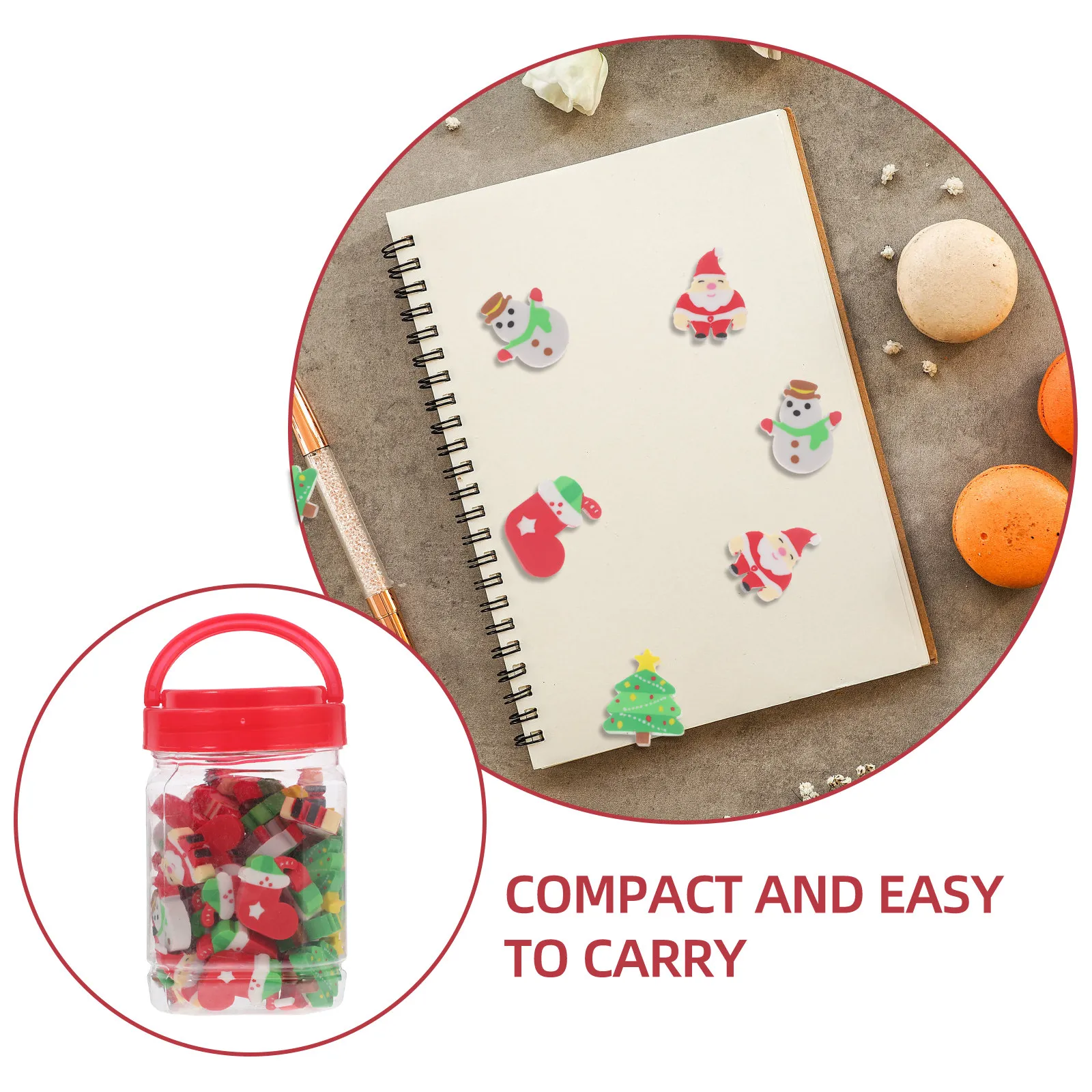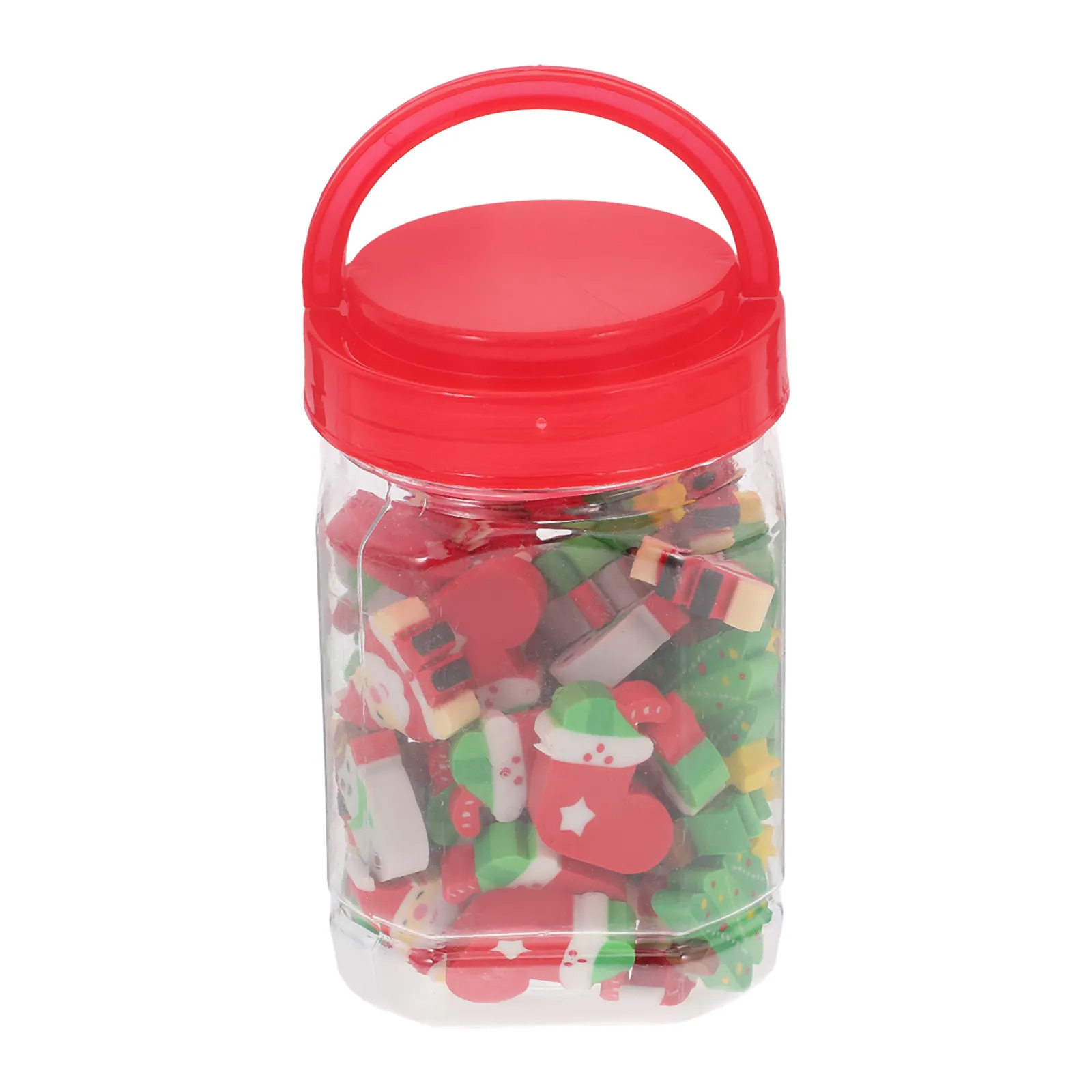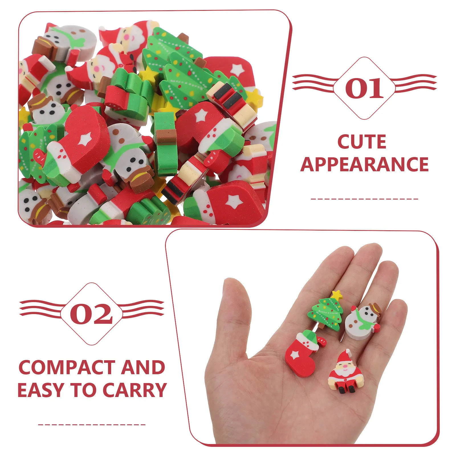 50Pcs Festive Erasers Set Cute Christmas Tree Snowman Santa Pencil Erasers for Xmas Goodie Bags Fillers Classroom