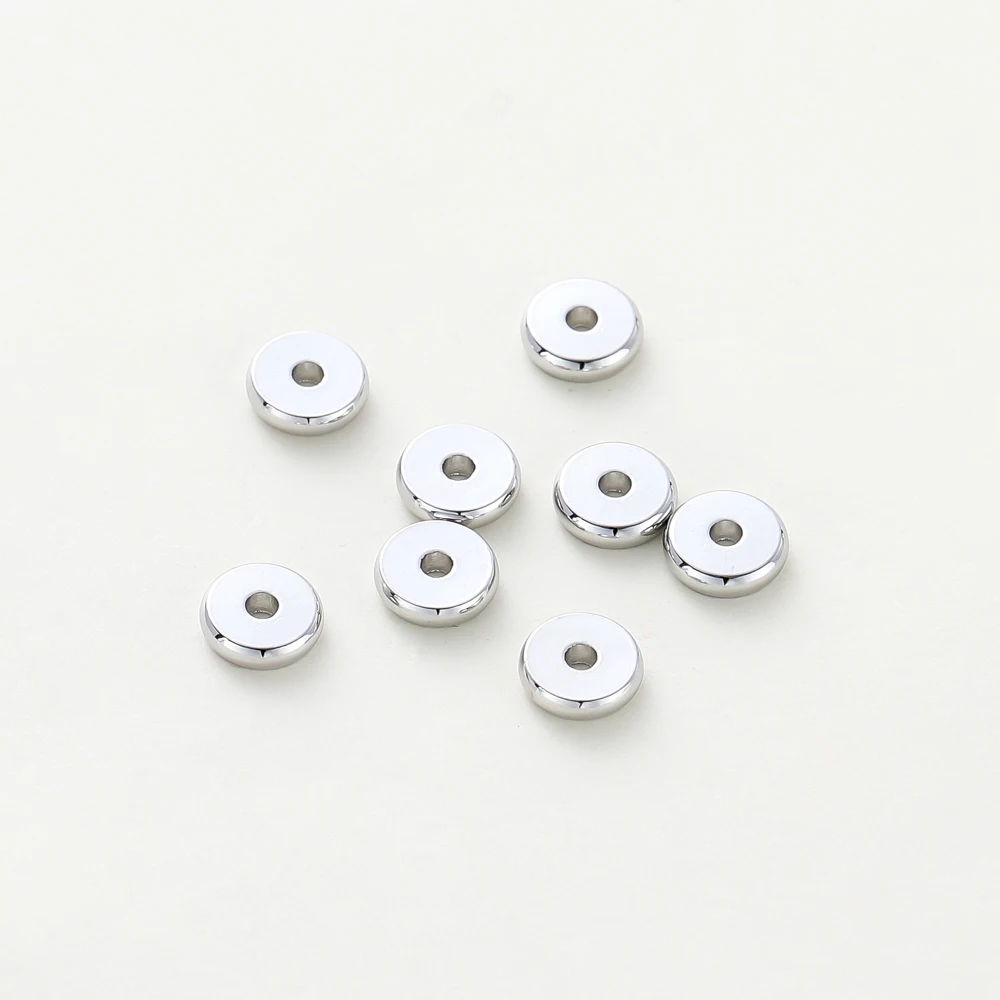 50pcs/lot 14K/18K Gold Color Plated Brass 4mm 5mm 6mm Round Spacer Beads Flat Bracelet Beads for DIY Jewelry Accessories