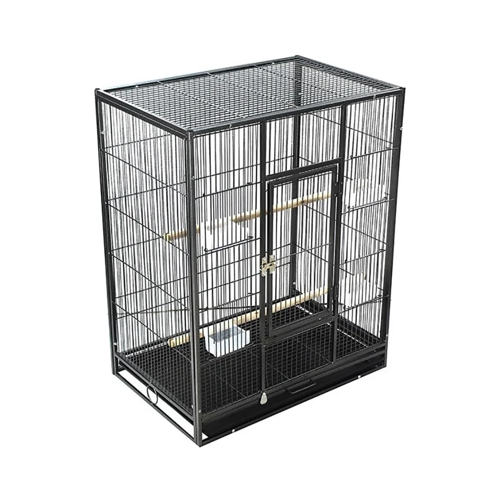 4. Durable & Easy-Clean Features: Spend less time scrubbing and more time bonding with your chirpy companions; Quick cleanup of the parrot cage is a breeze with the slide-out bottom tray, plus removable panels for added convenience.