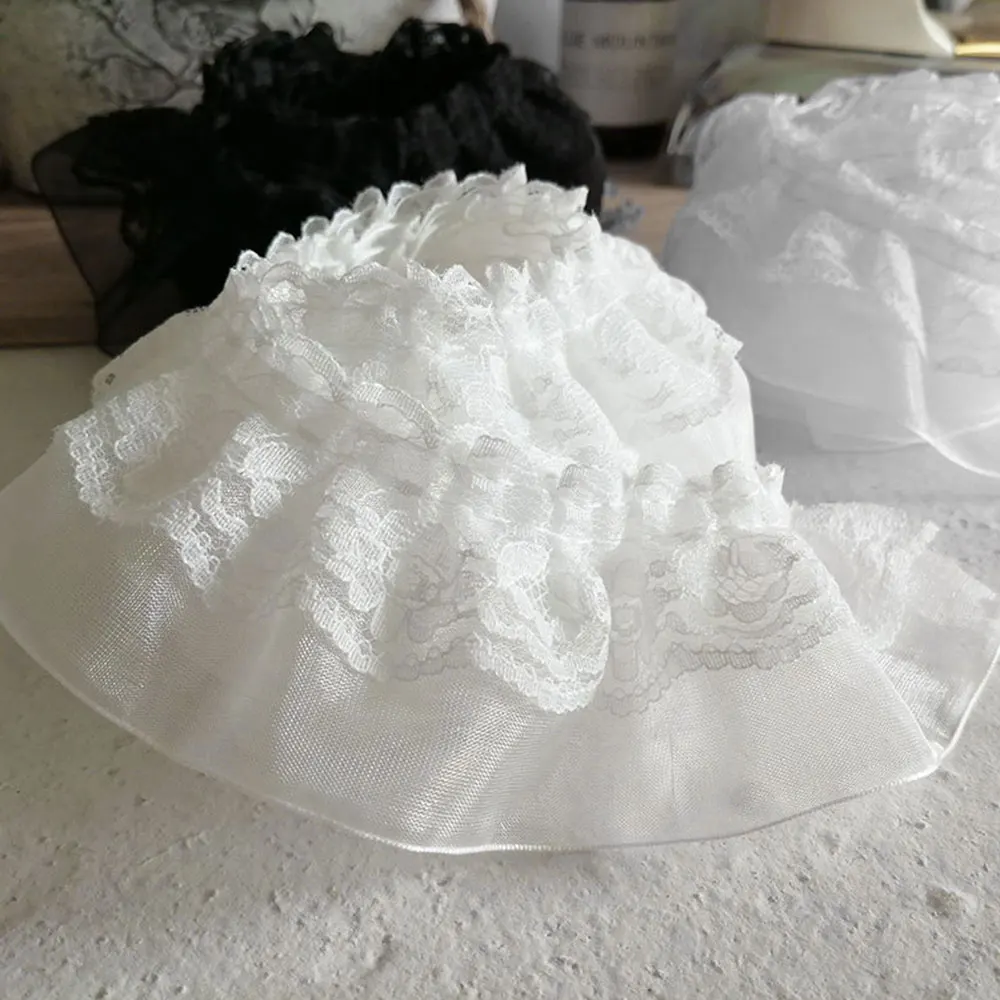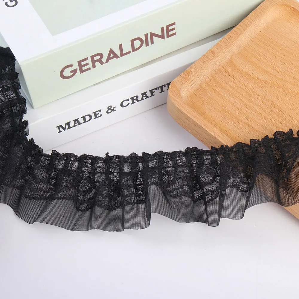 Vintage 2-layer black chiffon elastic pleated ruffle lace.
