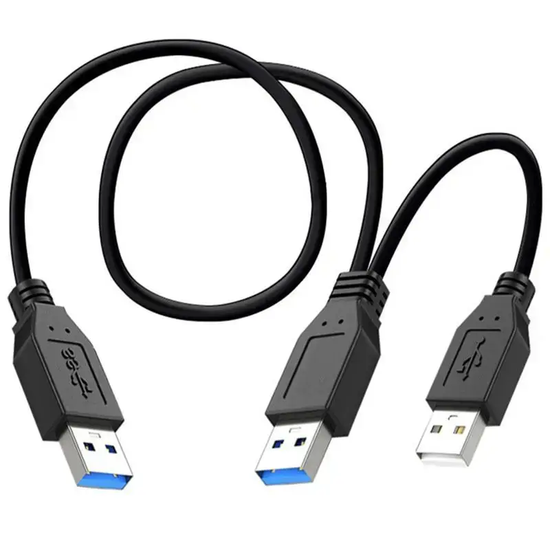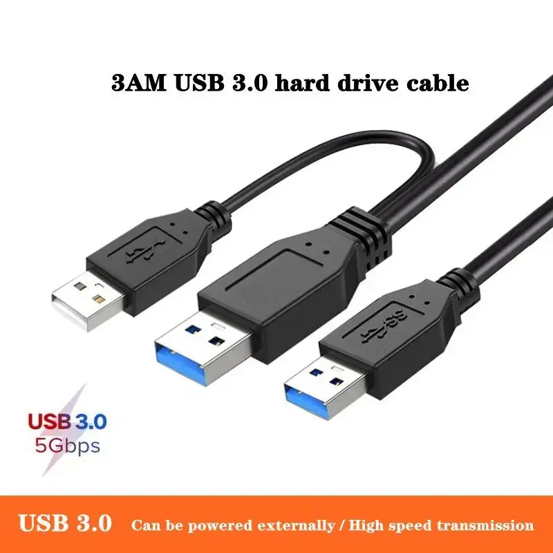 USB 3.0 male to male hard drive data cable with auxiliary power supply port, 3 * USB male head mobile hard drive connection cable 5Gbps high-speed transmission 3AM laptop heat sink set-top box dual head power cable ;
